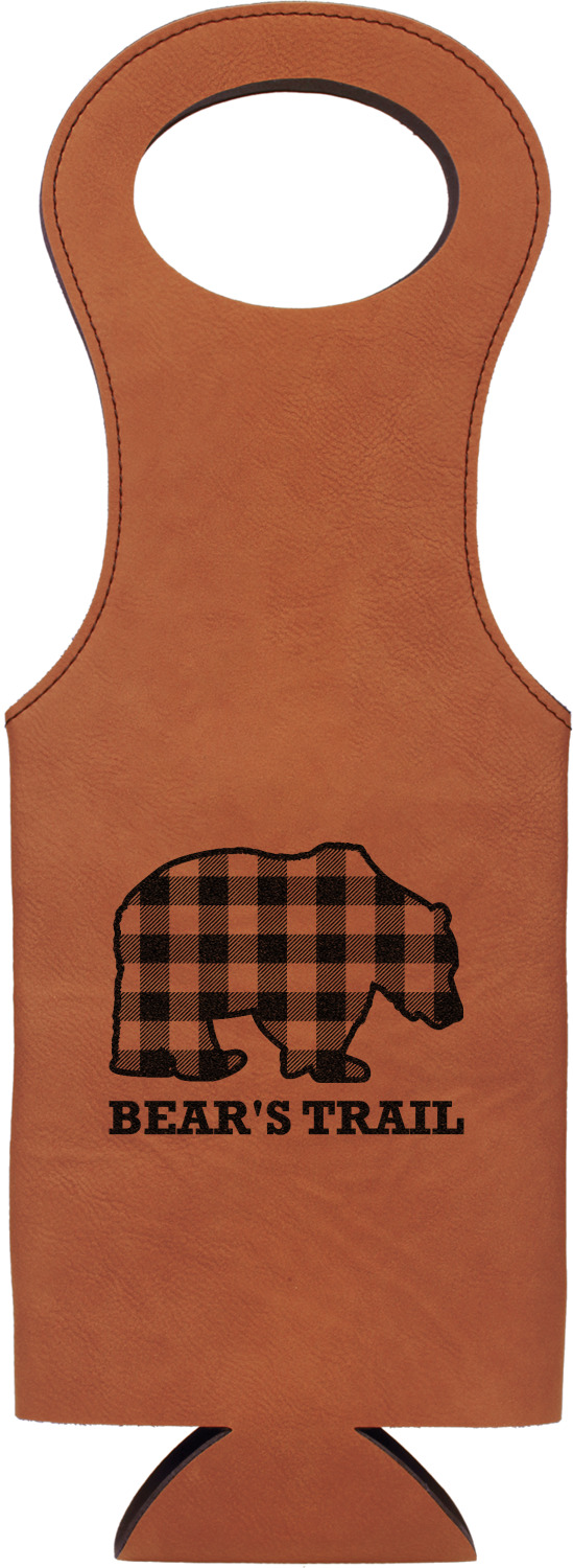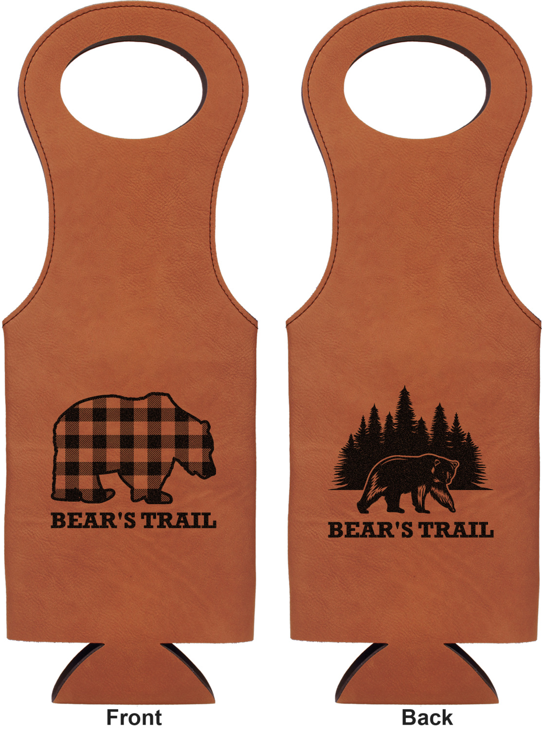 This wine carrier is made from a stunning leatherette, in a cognac-brown color. Strong, black stitching lines the sides of your wine bottle bag and provides extra durability. The interior is lined with a padded, black material to allow for a snug fit once your bottle is placed inside. At the top of this wine gift bag, you'll find two oval shaped handles that elegantly complements the rest of the bag's style. We provide you with the option of laser-engraving the front, or the front and back of your new personalized wine bag!