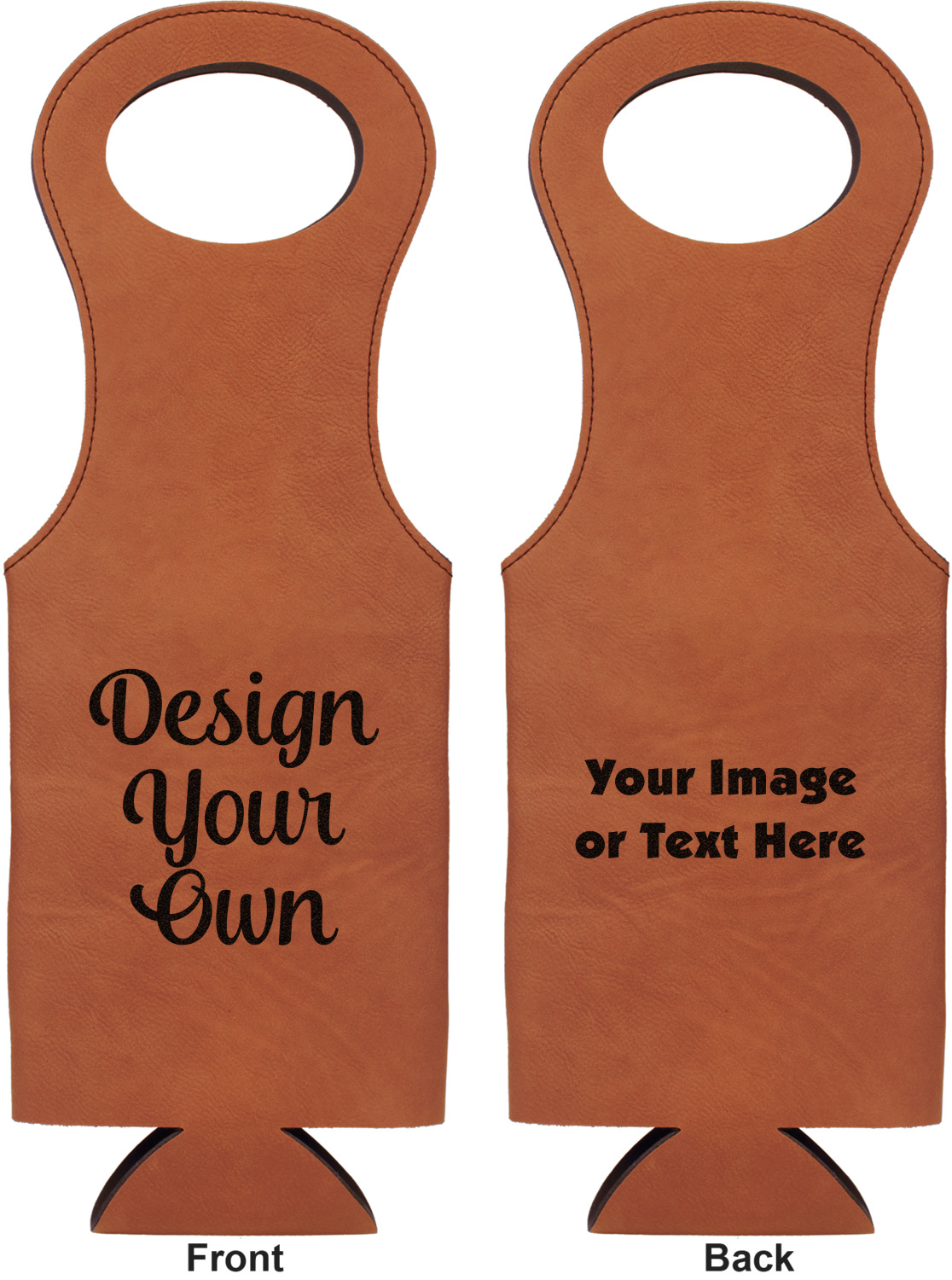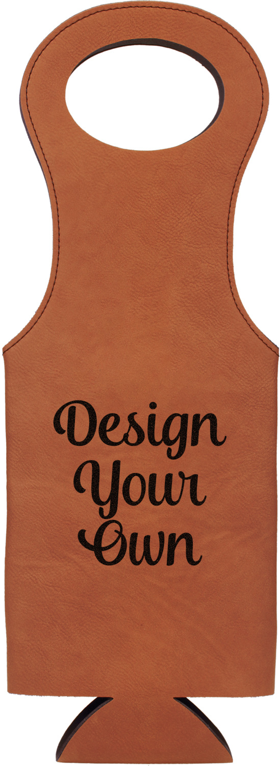 This wine carrier is made from a stunning leatherette, in a cognac-brown color. Strong, black stitching lines the sides of your wine bottle bag and provides extra durability. The interior is lined with a padded, black material to allow for a snug fit once your bottle is placed inside. At the top of this wine gift bag, you'll find two oval shaped handles that elegantly complements the rest of the bag's style. We provide you with the option of laser-engraving the front, or the front and back of your new personalized wine bag!