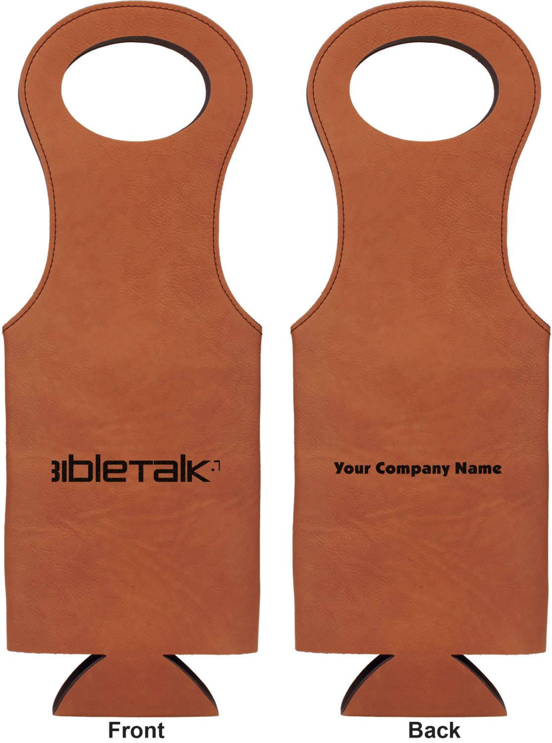 This wine carrier is made from a stunning leatherette, in a cognac-brown color. Strong, black stitching lines the sides of your wine bottle bag and provides extra durability. The interior is lined with a padded, black material to allow for a snug fit once your bottle is placed inside. At the top of this wine gift bag, you'll find two oval shaped handles that elegantly complements the rest of the bag's style. We provide you with the option of laser-engraving the front, or the front and back of your new personalized wine bag!