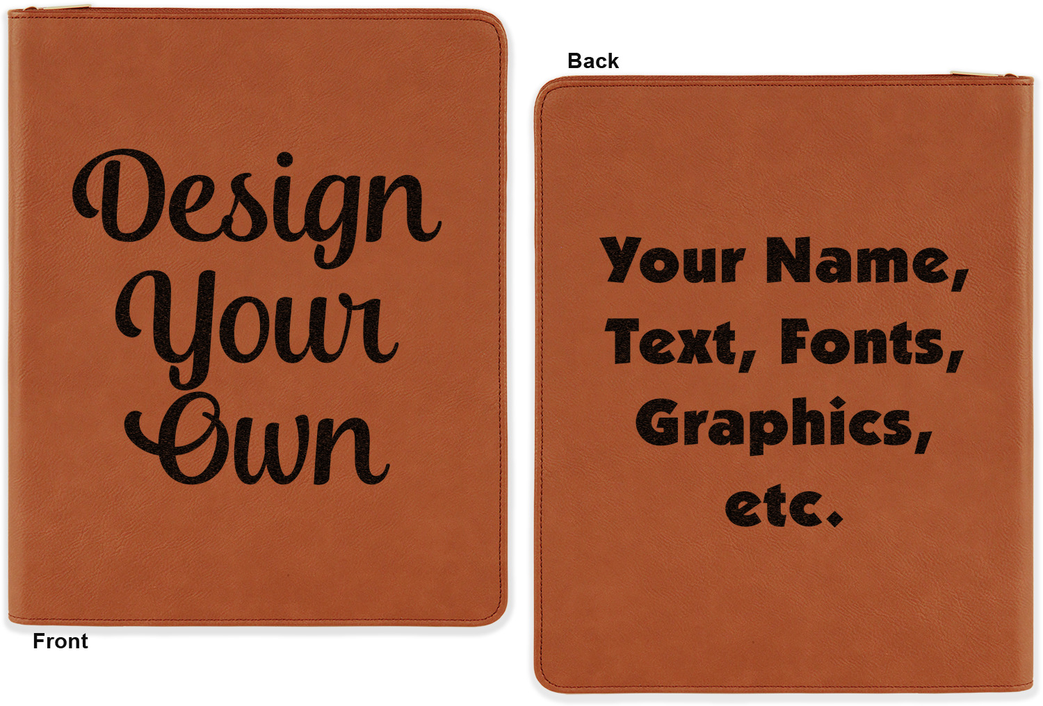 Have fun personalizing the front or the front and back of your portfolio. Choose a fun graphic, monogram, quote, or text to be laser engraved right onto your portfolio.