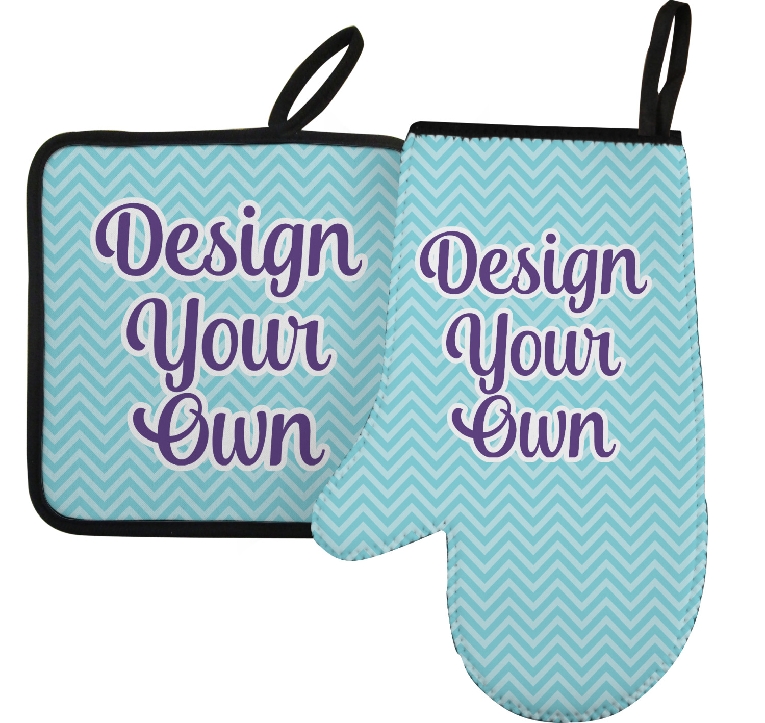 Along with our heat resistant gloves, we also carry personalized pot holders. These pot holders also feature a neoprene front that displays your personalization, and a textured, rubber backing for a sturdy grip. The two materials are connected with a sleek, black trim, and the hot pot holder also includes an attached loop for hanging and storage. You can purchase a kitchen pot holder by itself, or alongside a right or left oven mitt, depending on your needs. The pot holder itself is approximately 8.75 inches by 8.75 inches and 0.25 inches tall.