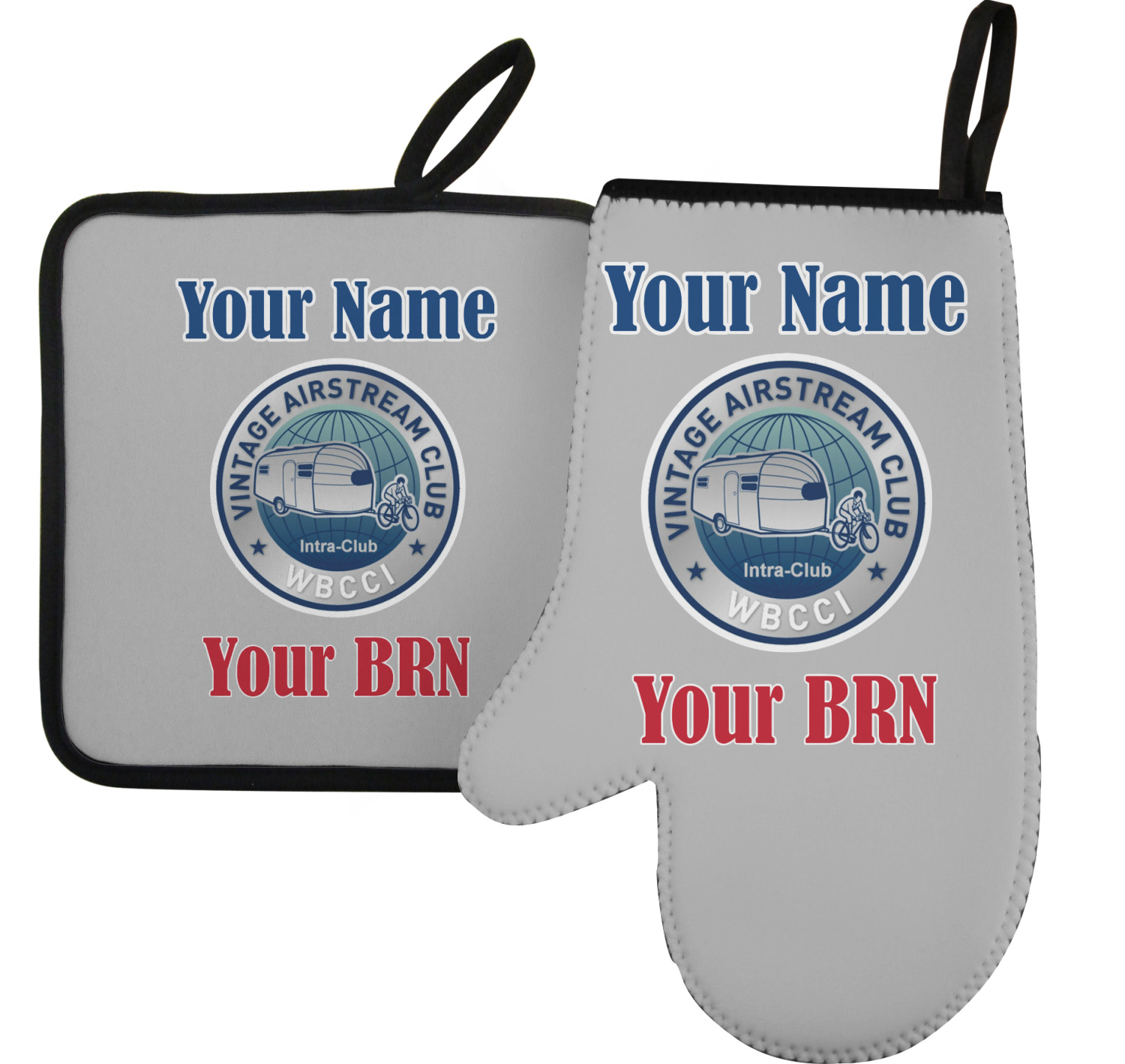 Along with our heat resistant gloves, we also carry personalized pot holders. These pot holders also feature a neoprene front that displays your personalization, and a textured, rubber backing for a sturdy grip. The two materials are connected with a sleek, black trim, and the hot pot holder also includes an attached loop for hanging and storage. You can purchase a kitchen pot holder by itself, or alongside a right or left oven mitt, depending on your needs. The pot holder itself is approximately 8.75 inches by 8.75 inches and 0.25 inches tall.