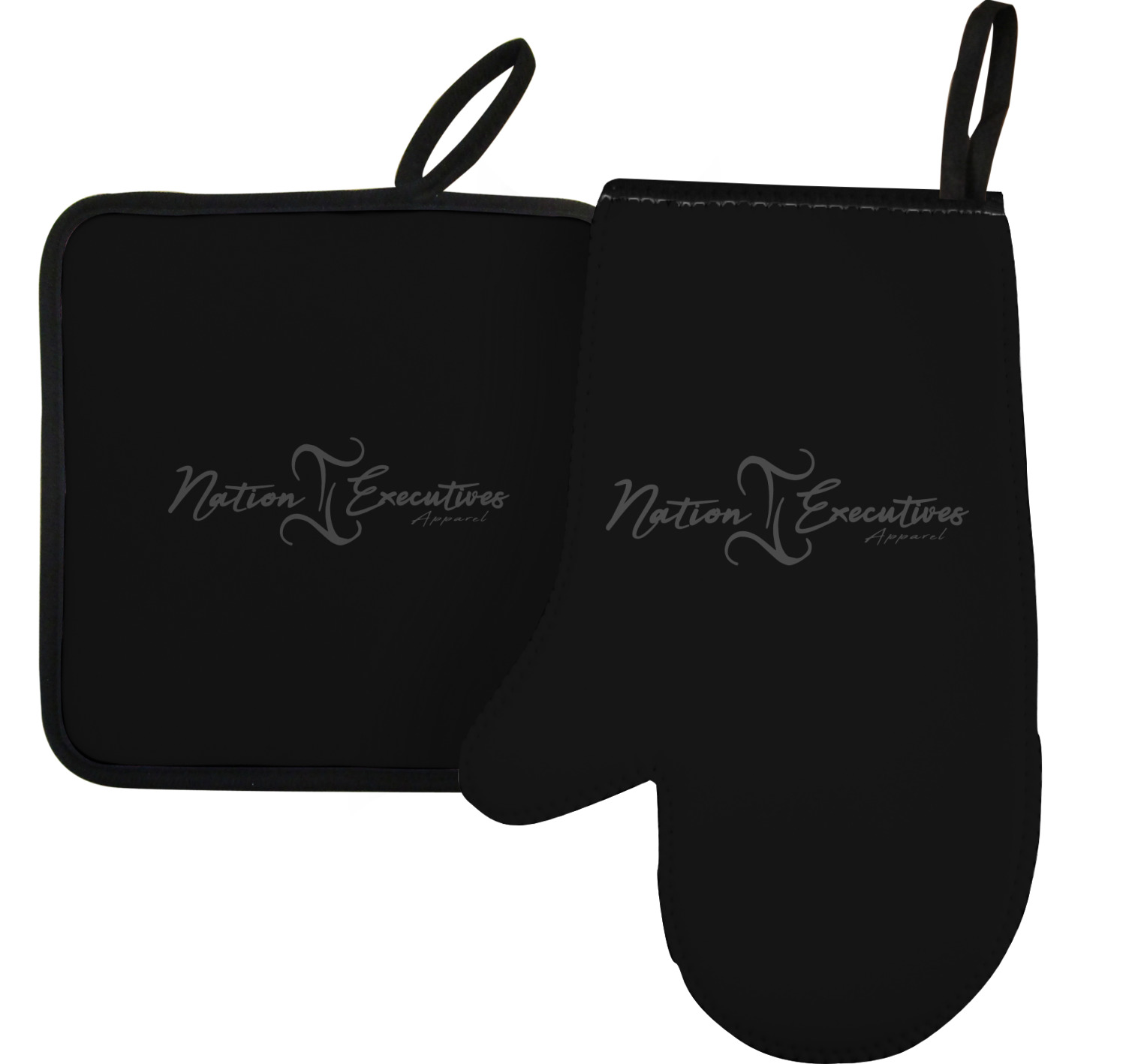 Along with our heat resistant gloves, we also carry personalized pot holders. These pot holders also feature a neoprene front that displays your personalization, and a textured, rubber backing for a sturdy grip. The two materials are connected with a sleek, black trim, and the hot pot holder also includes an attached loop for hanging and storage. You can purchase a kitchen pot holder by itself, or alongside a right or left oven mitt, depending on your needs. The pot holder itself is approximately 8.75 inches by 8.75 inches and 0.25 inches tall.