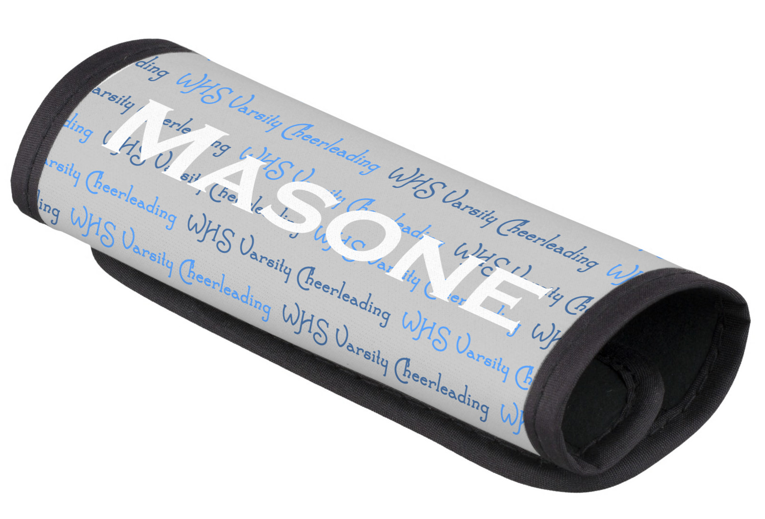 The luggage handle covers are made of neoprene with black trim and have Velcro closure to snugly fit around the handle. Your design is printed on the neoprene. The covers measure approx 5"x6".
