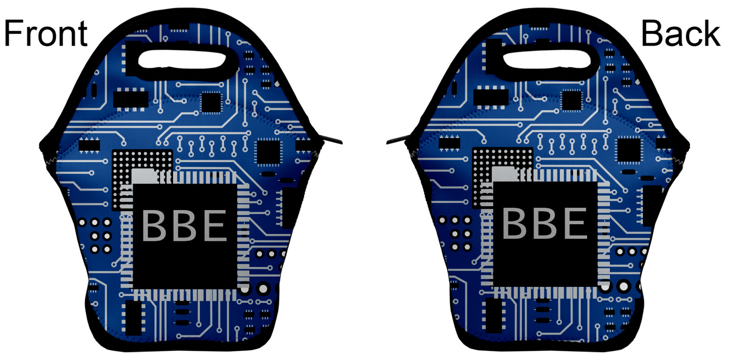 Our personalized lunch bags are made from a strong neoprene, and secure with a zipper closure that lines the top of the bag.The edges of the neoprene are sewn together with a heavy duty stitch, adding to the durability of the bag. The is accompanied by a reinforced handle at its top, for the easy transport of your lunch. We display your personalization across both the front and back of this neoprene lunch bag, while the remaining sides are a sleek black in color. Each bag measures at 13.5 inches tall, and 11.5 inches wide.