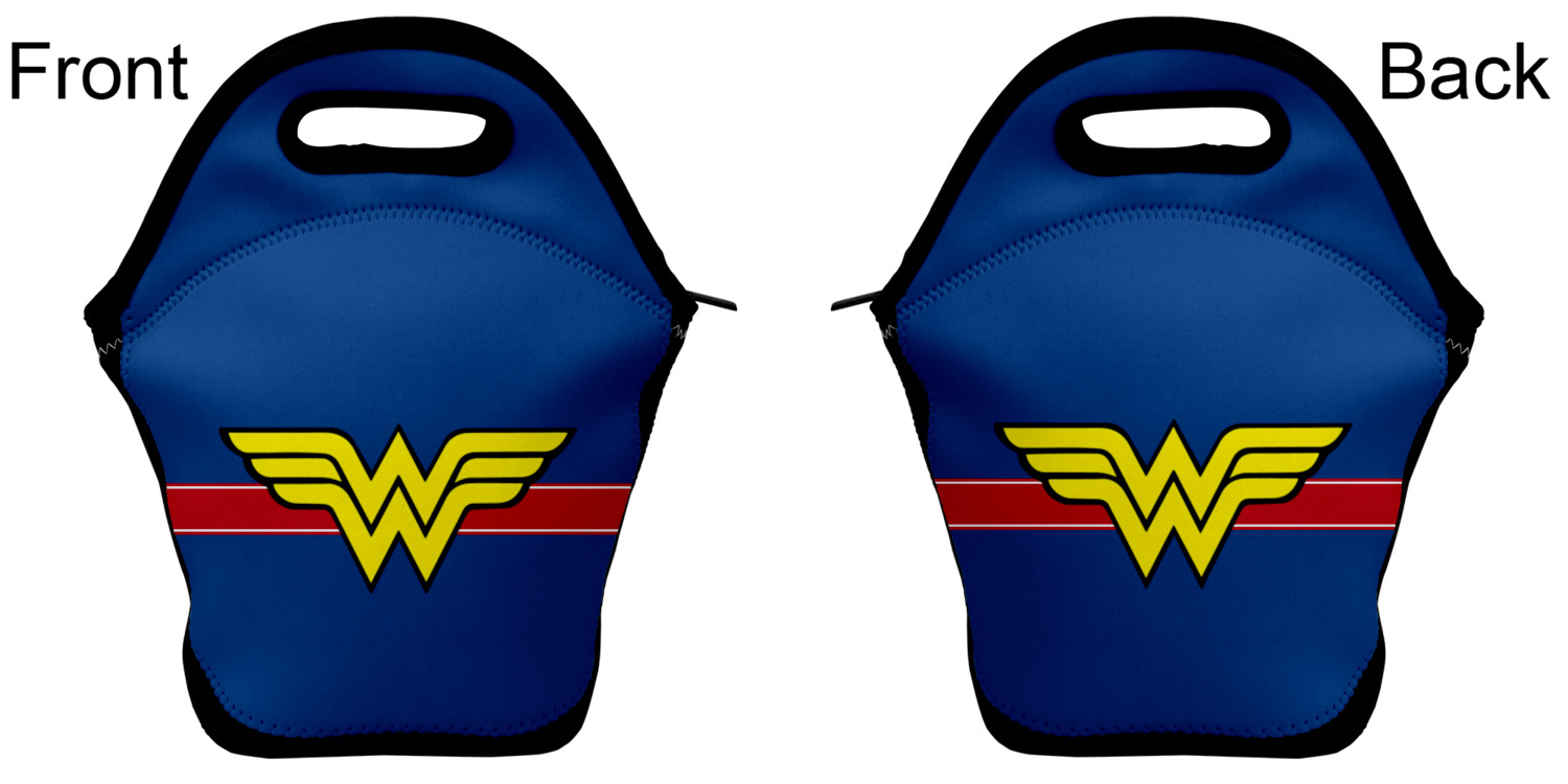 Our personalized lunch bags are made from a strong neoprene, and secure with a zipper closure that lines the top of the bag.The edges of the neoprene are sewn together with a heavy duty stitch, adding to the durability of the bag. The is accompanied by a reinforced handle at its top, for the easy transport of your lunch. We display your personalization across both the front and back of this neoprene lunch bag, while the remaining sides are a sleek black in color. Each bag measures at 13.5 inches tall, and 11.5 inches wide.