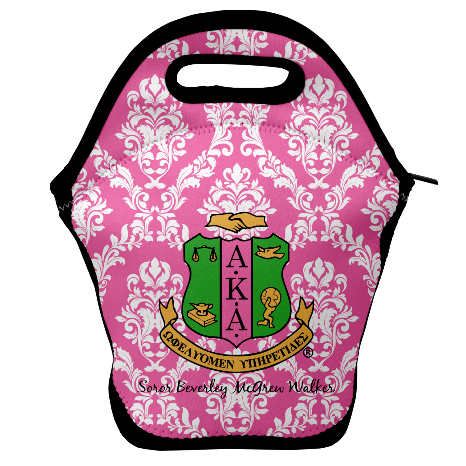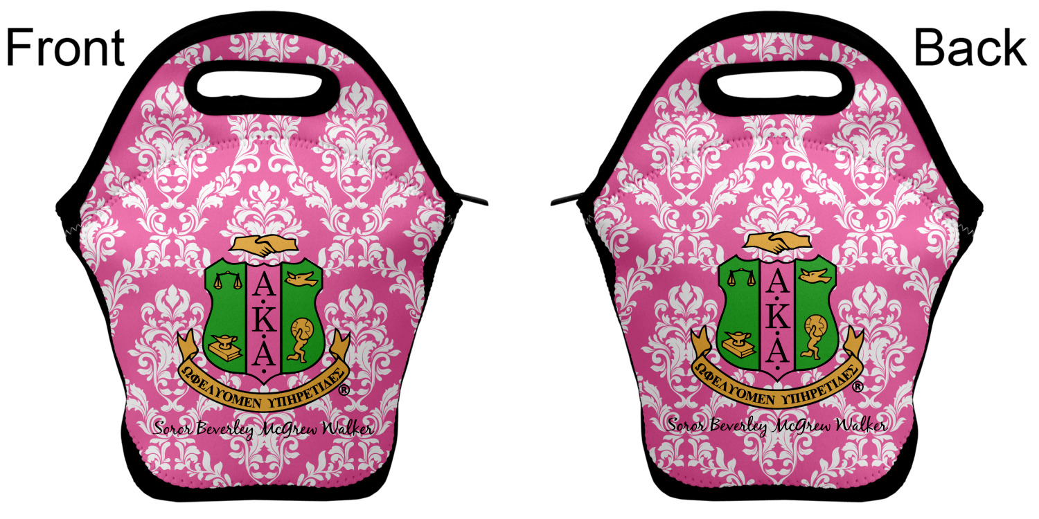 Our personalized lunch bags are made from a strong neoprene, and secure with a zipper closure that lines the top of the bag.The edges of the neoprene are sewn together with a heavy duty stitch, adding to the durability of the bag. The is accompanied by a reinforced handle at its top, for the easy transport of your lunch. We display your personalization across both the front and back of this neoprene lunch bag, while the remaining sides are a sleek black in color. Each bag measures at 13.5 inches tall, and 11.5 inches wide.