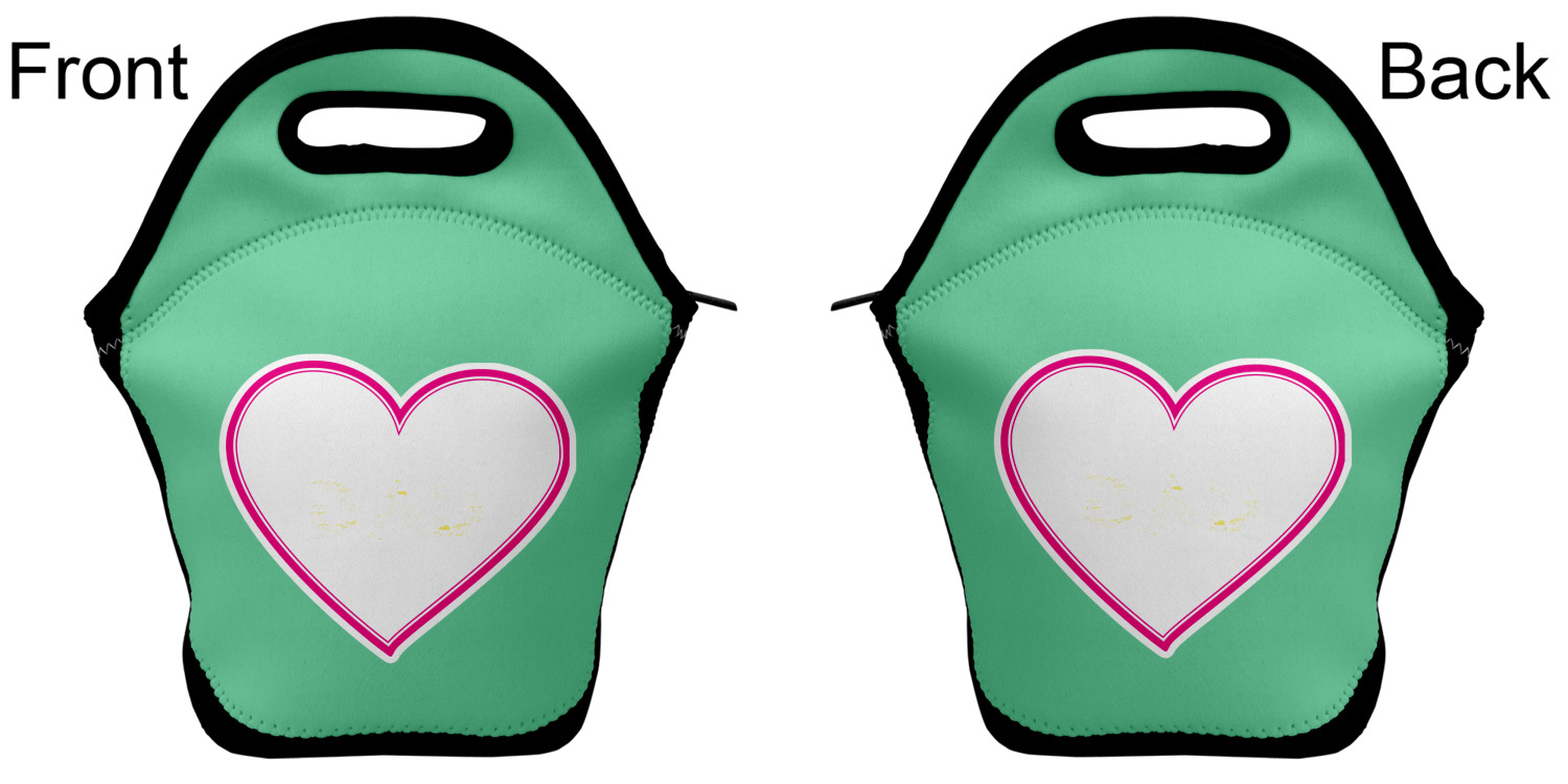 Our personalized lunch bags are made from a strong neoprene, and secure with a zipper closure that lines the top of the bag.The edges of the neoprene are sewn together with a heavy duty stitch, adding to the durability of the bag. The is accompanied by a reinforced handle at its top, for the easy transport of your lunch. We display your personalization across both the front and back of this neoprene lunch bag, while the remaining sides are a sleek black in color. Each bag measures at 13.5 inches tall, and 11.5 inches wide.