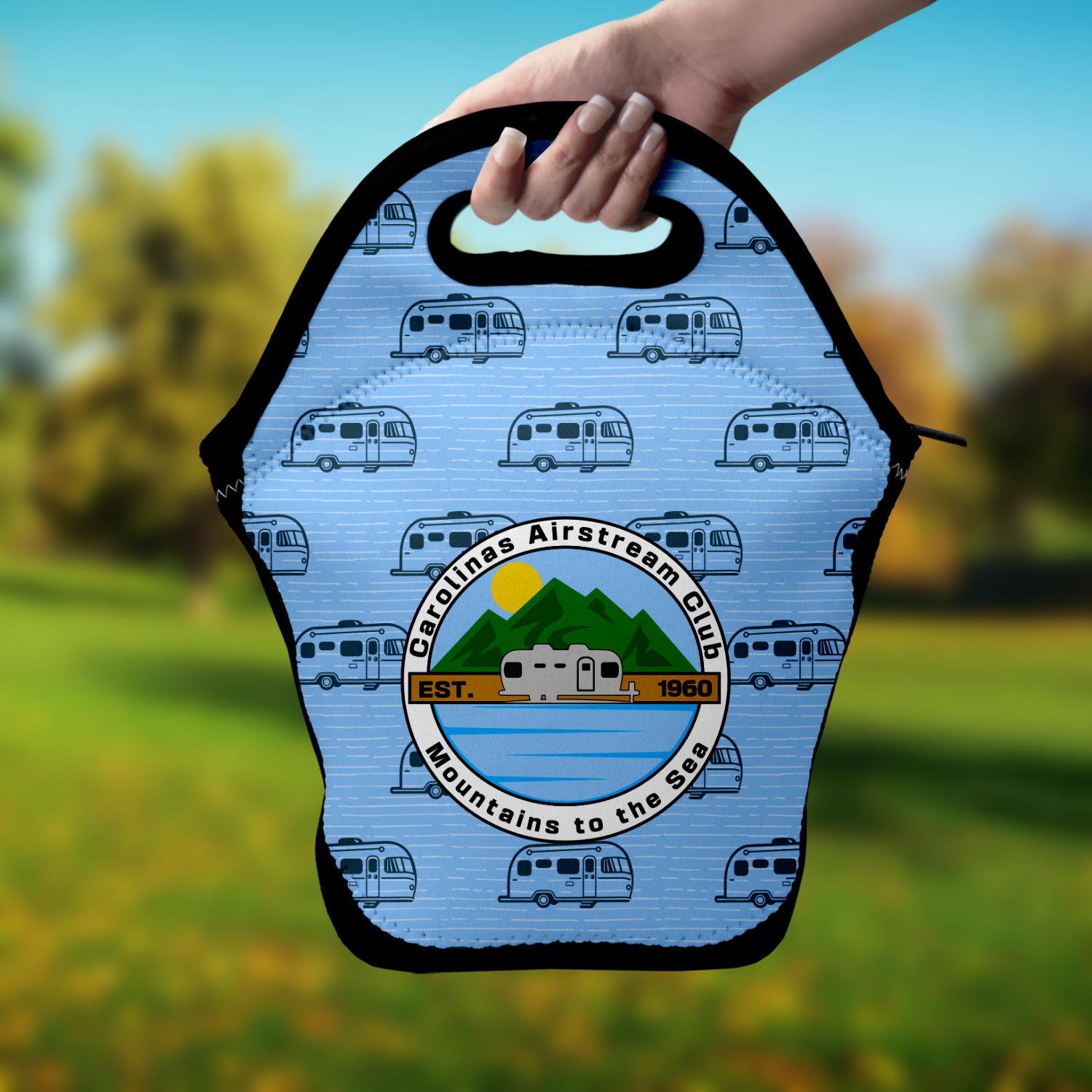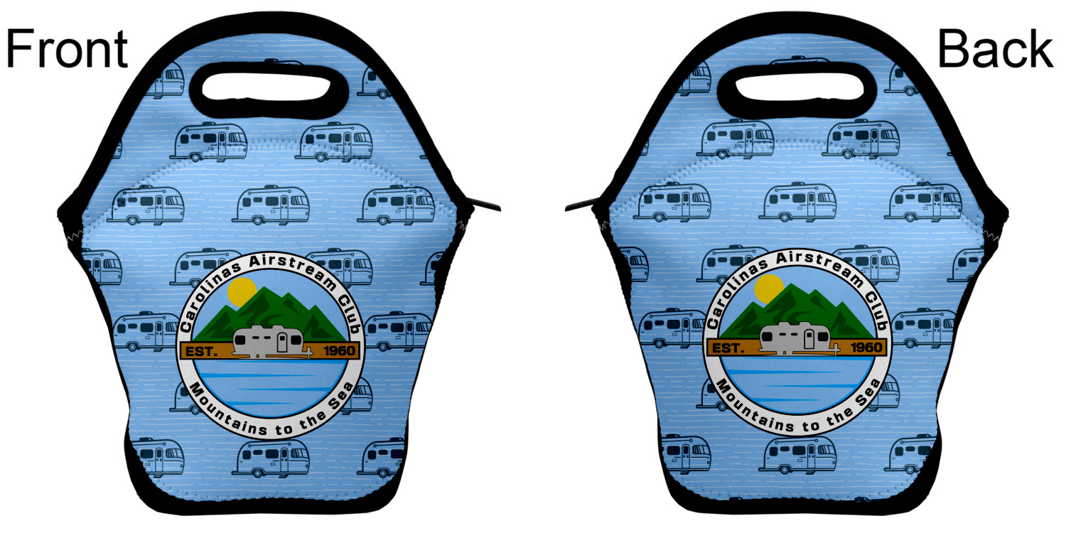 Our personalized lunch bags are made from a strong neoprene, and secure with a zipper closure that lines the top of the bag.The edges of the neoprene are sewn together with a heavy duty stitch, adding to the durability of the bag. The is accompanied by a reinforced handle at its top, for the easy transport of your lunch. We display your personalization across both the front and back of this neoprene lunch bag, while the remaining sides are a sleek black in color. Each bag measures at 13.5 inches tall, and 11.5 inches wide.