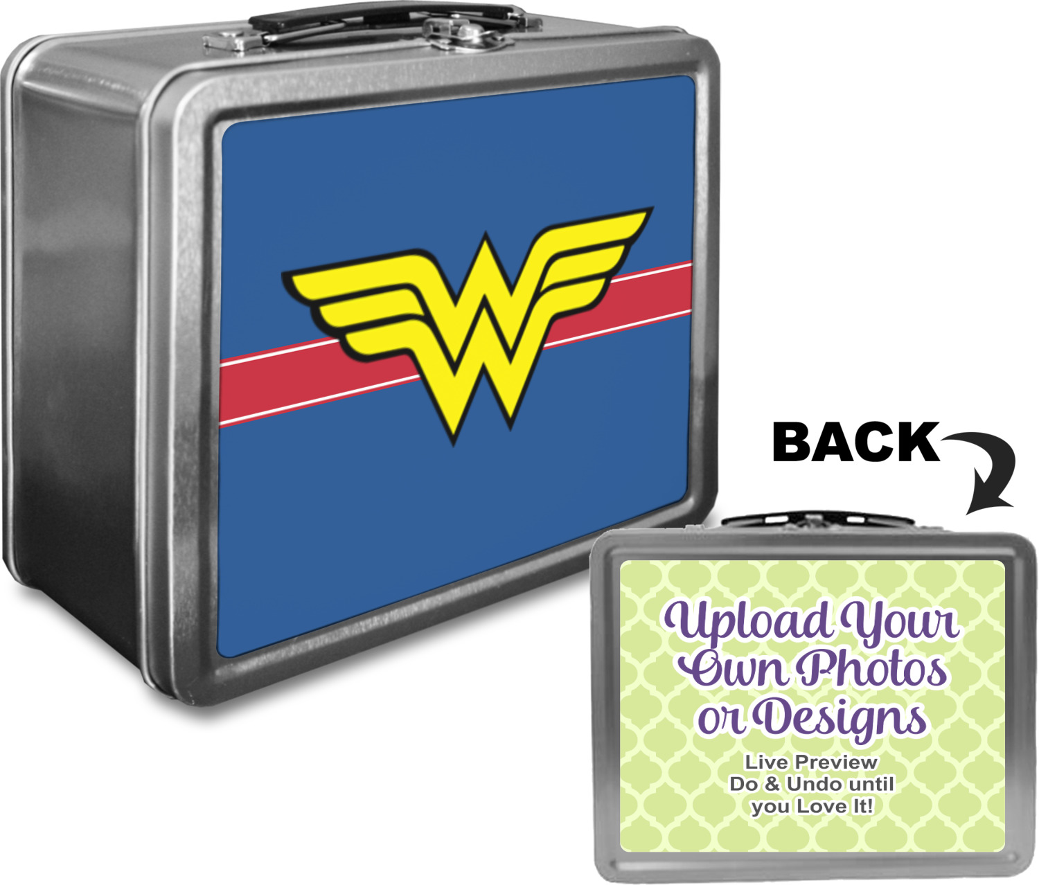 Design one of our metal lunch boxes and never again be forced to carry your lunch in another limp, brown bag! These lunch boxes , with your customization, make for wonderful, one-of-a-kind gifts for family and friends, or a great treat for yourself!