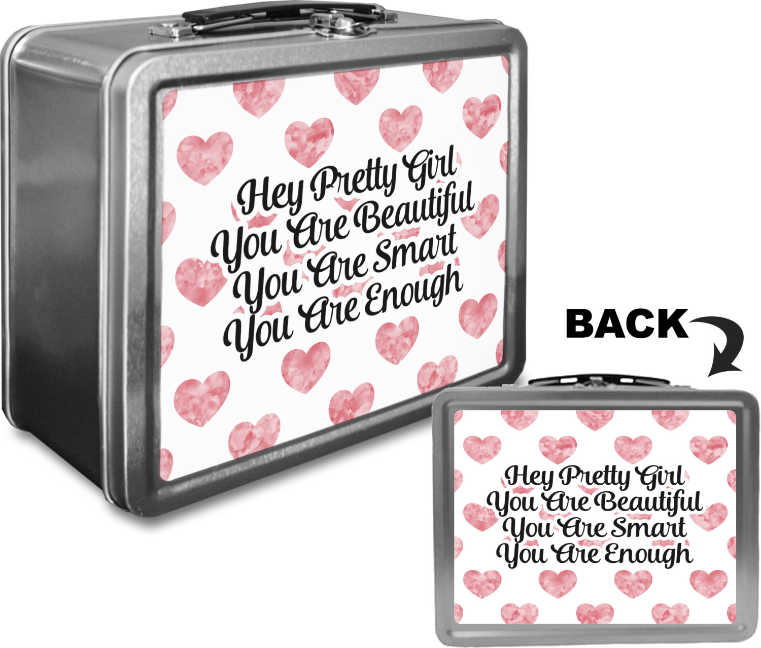 When customized, these boxes can also serve as a unique keepsake box! We print your design on both the front and back of this box, using a high quality matte vinyl, with waterproof inks that withstand the test of time. The designs are then machine cut, and adhered to the sides of the metal lunch container.