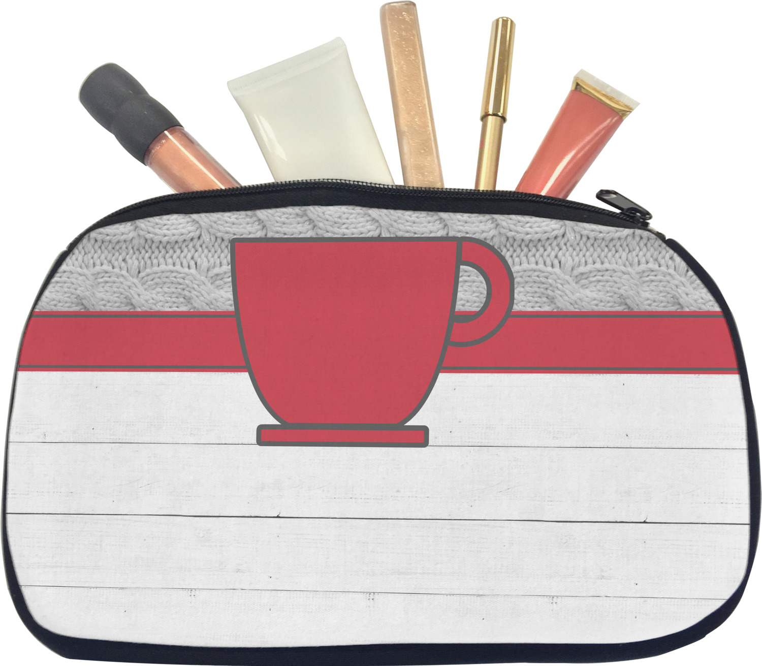 Our personalized makeup bags are available in many different designs, patterns and colors - so you are sure to find one that will love. They are made of neoprene (same material as wet-suits) and thus are water resistant, so spillages in your makeup bag will not end up all over you purse. They are customized on one side and are black on the other side and the zipper is black as well.