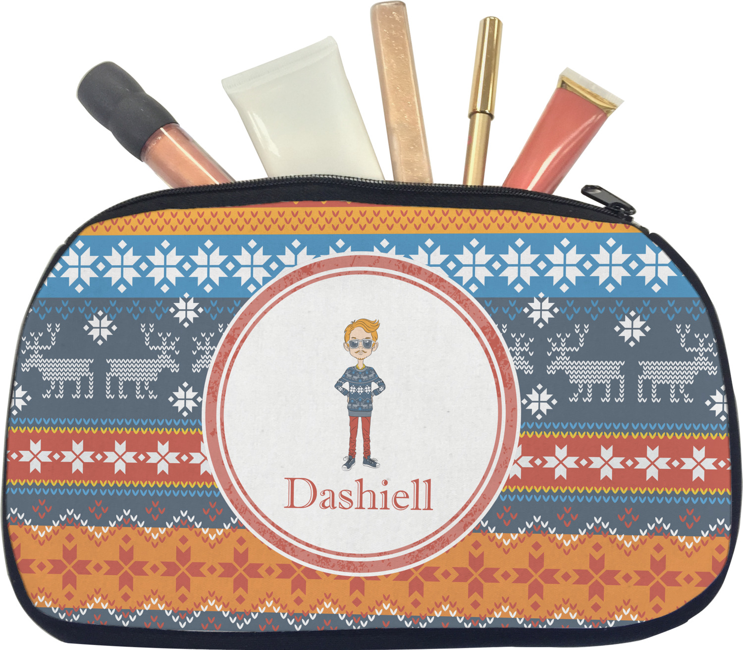 Our personalized makeup bags are available in many different designs, patterns and colors - so you are sure to find one that will love. They are made of neoprene (same material as wet-suits) and thus are water resistant, so spillages in your makeup bag will not end up all over you purse. They are customized on one side and are black on the other side and the zipper is black as well.