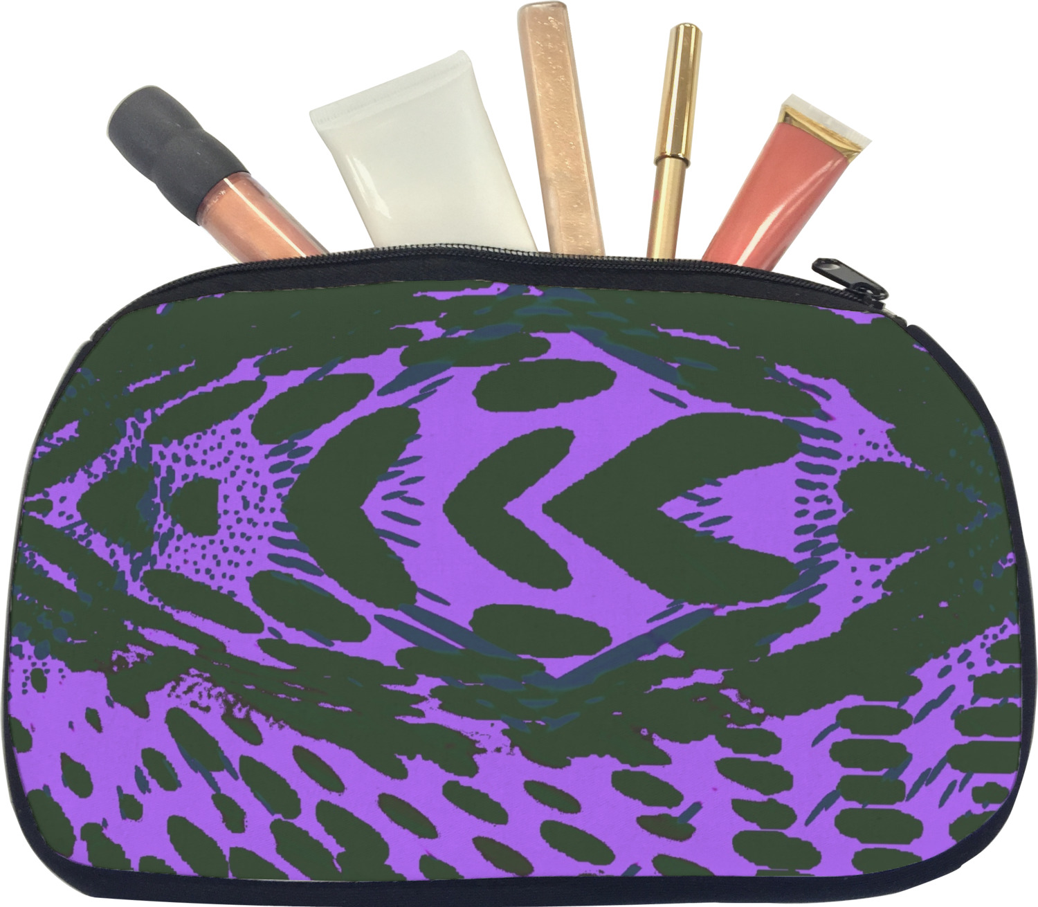 Our personalized makeup bags are available in many different designs, patterns and colors - so you are sure to find one that will love. They are made of neoprene (same material as wet-suits) and thus are water resistant, so spillages in your makeup bag will not end up all over you purse. They are customized on one side and are black on the other side and the zipper is black as well.