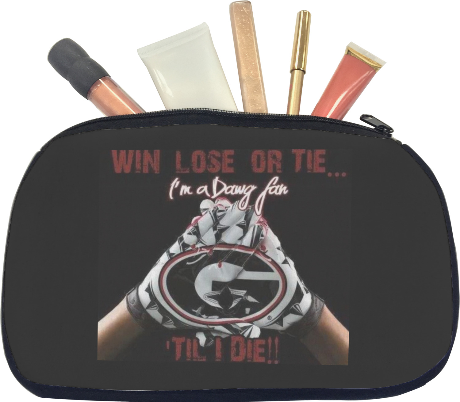 Our personalized makeup bags are available in many different designs, patterns and colors - so you are sure to find one that will love. They are made of neoprene (same material as wet-suits) and thus are water resistant, so spillages in your makeup bag will not end up all over you purse. They are customized on one side and are black on the other side and the zipper is black as well.
