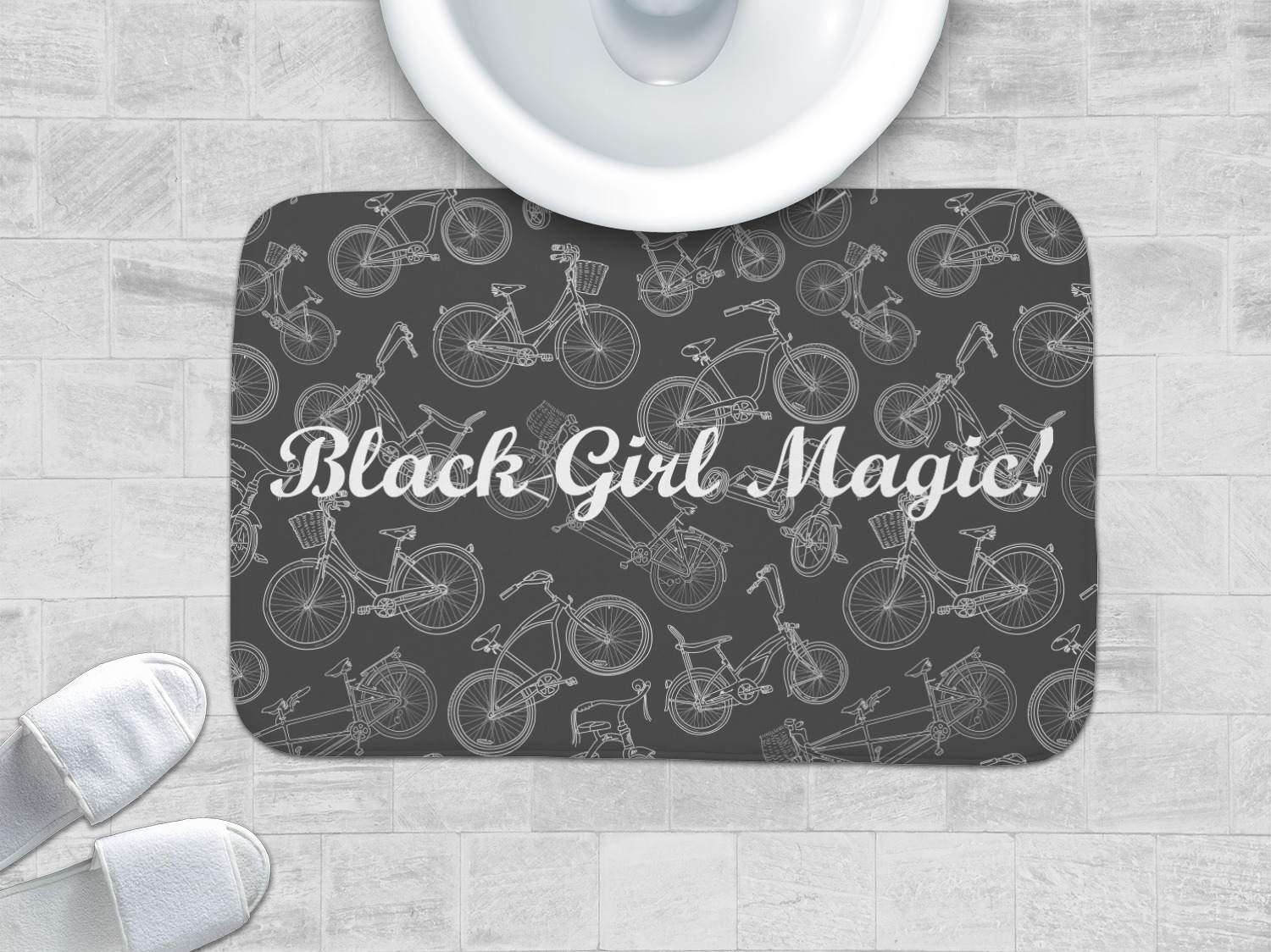 We offer this custom bath mat in four different sizes, so that you can choose the proper size for your bathroom and shower space. We suggest measuring the area before so that you can make an informed purchase. The four sizes are as follows: 24 by 17 inches, 34 by 21 inches, 48 by 36 inches, and 48 by 48 inches.