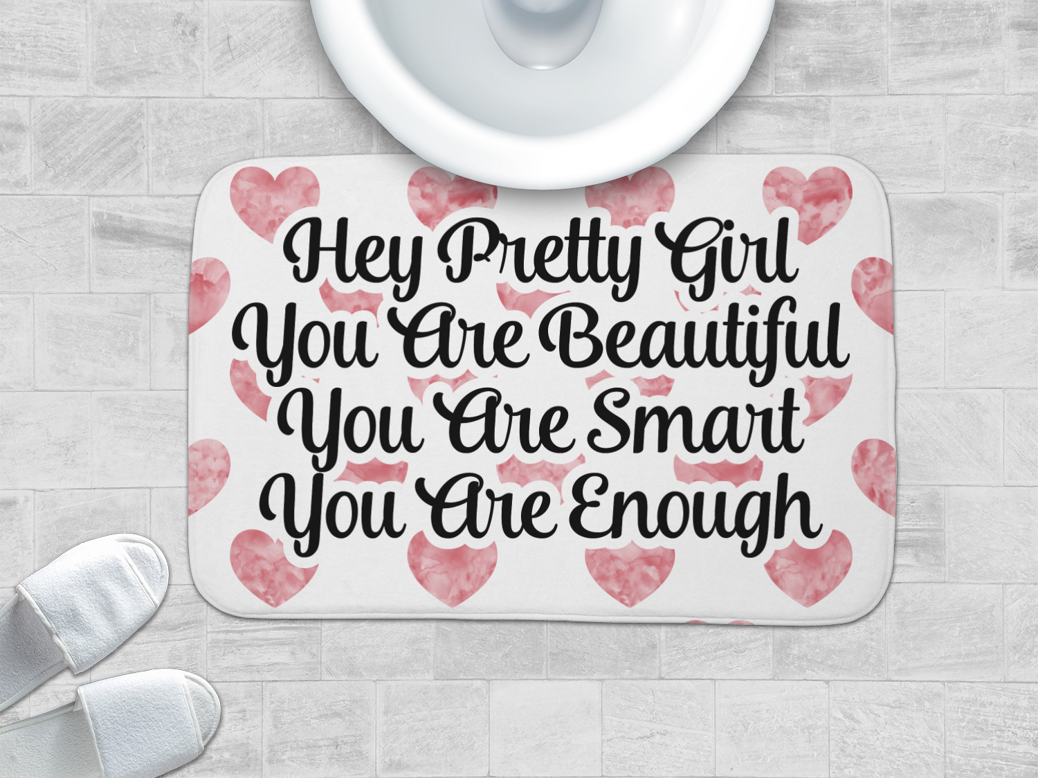 We offer this custom bath mat in four different sizes, so that you can choose the proper size for your bathroom and shower space. We suggest measuring the area before so that you can make an informed purchase. The four sizes are as follows: 24 by 17 inches, 34 by 21 inches, 48 by 36 inches, and 48 by 48 inches.