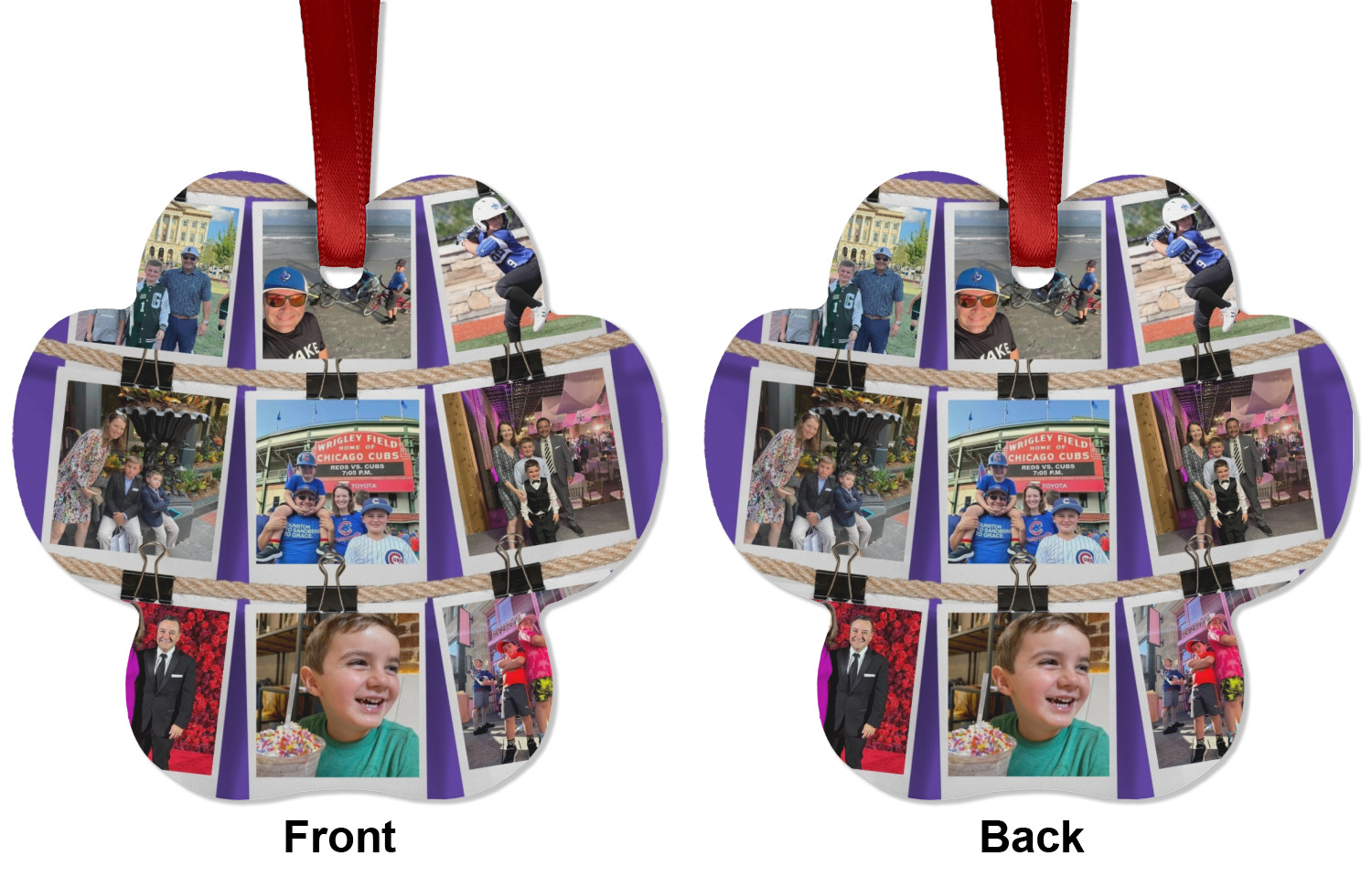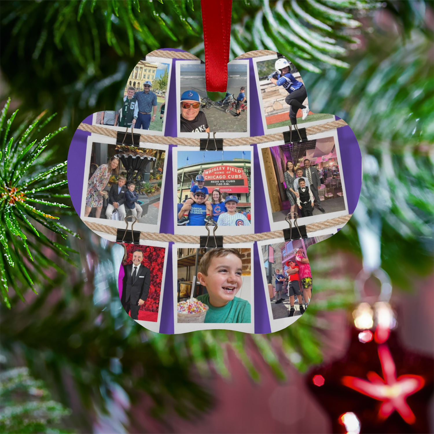 We offer double-sided printing on our personalized metal ornaments all with a gloss finish to make sure your Christmas tree continues to illuminate through the night. We offer 4 different metal ornament shapes to help express yourself or loved ones! Choose from our ball, paw print, star, or frame metal ornaments. Each metal ornament is an aluminum material sure to last you as many years as needed to share the joy and warmth of the holiday. We pair each customizable ornament with a red ribbon to tie your ornament and hang on your Christmas tree!