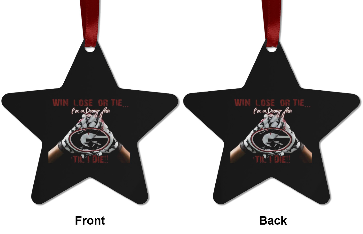 We offer double-sided printing on our personalized metal ornaments all with a gloss finish to make sure your Christmas tree continues to illuminate through the night. We offer 4 different metal ornament shapes to help express yourself or loved ones! Choose from our ball, paw print, star, or frame metal ornaments. Each metal ornament is an aluminum material sure to last you as many years as needed to share the joy and warmth of the holiday. We pair each customizable ornament with a red ribbon to tie your ornament and hang on your Christmas tree!