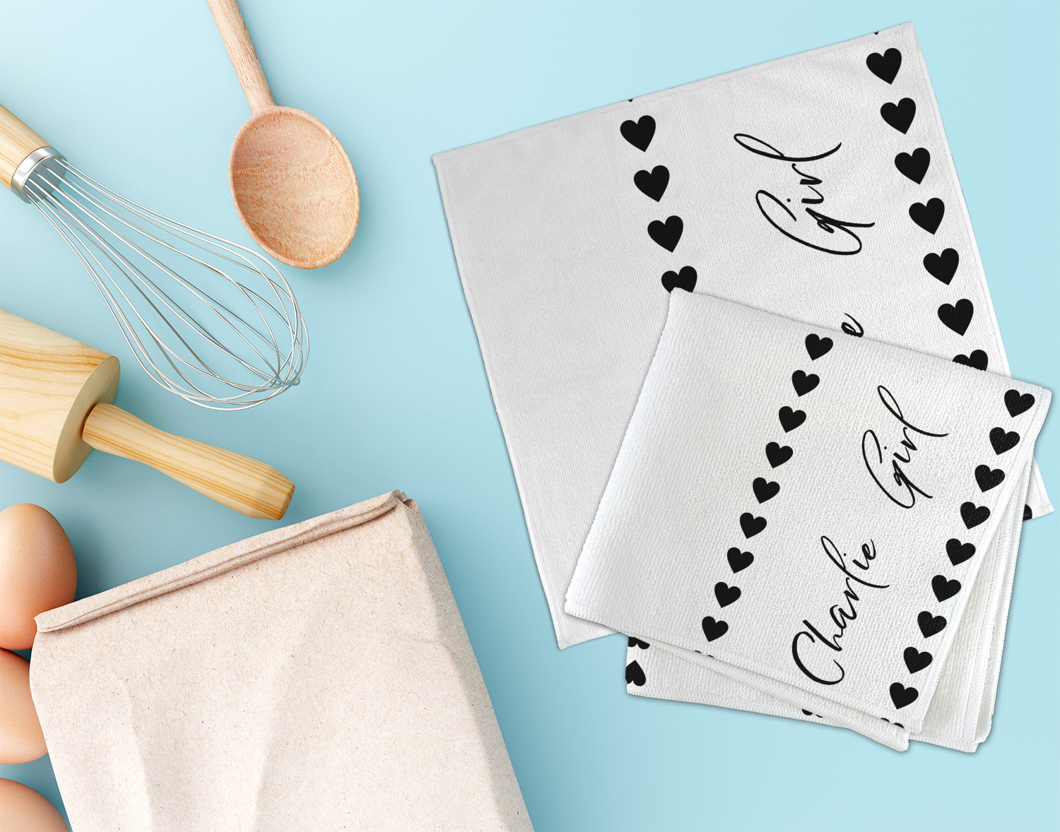 These lightweight kitchen dish rags are made from microfiber, and the dish cloths display your customization on their fronts, while the backs are a classic white. At 16 by 16 inches, these rags have a soft feel and being microfiber they are lint free when used.