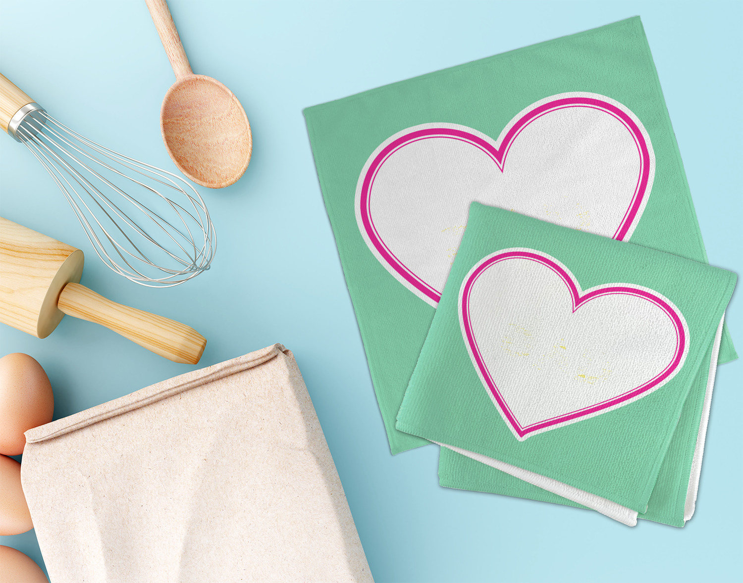 These lightweight kitchen dish rags are made from microfiber, and the dish cloths display your customization on their fronts, while the backs are a classic white. At 16 by 16 inches, these rags have a soft feel and being microfiber they are lint free when used.