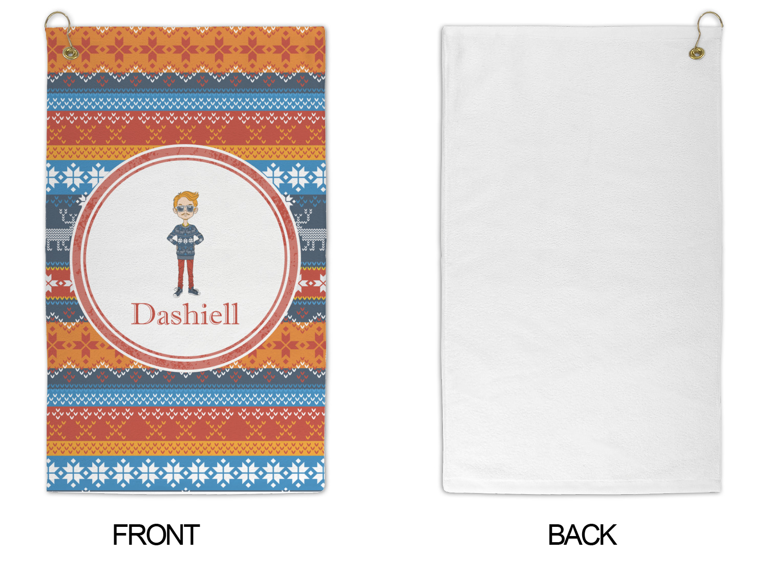 Hipster Winter Design on Custom Microfiber Golf Towel - Large