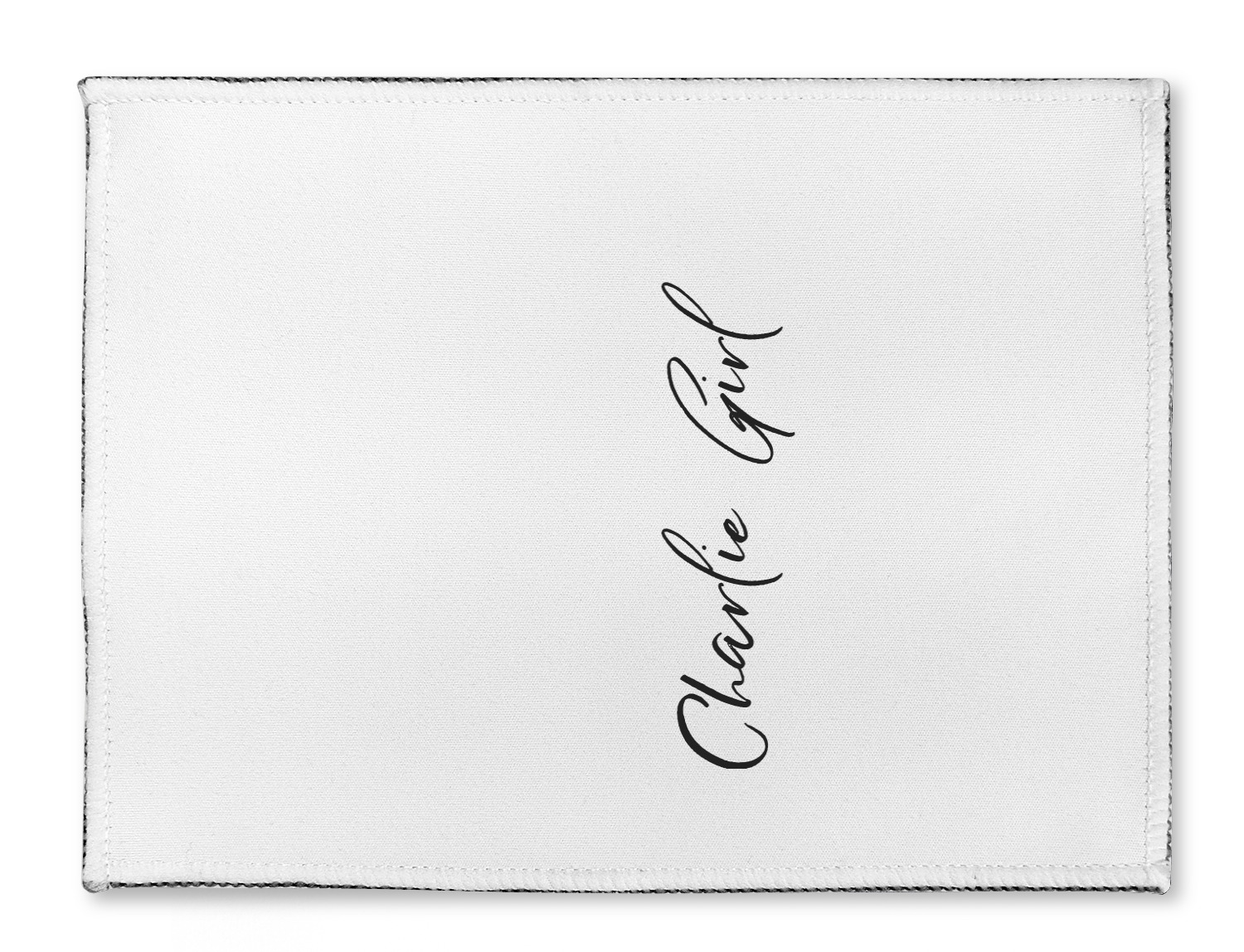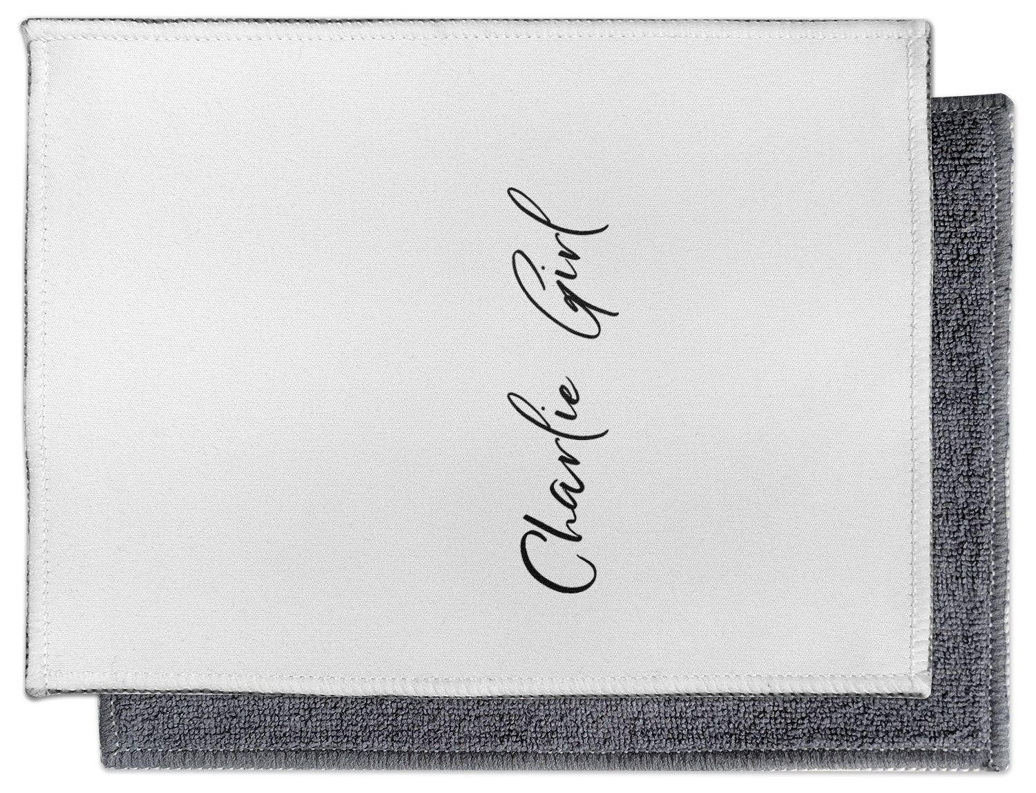 The back of this cleaning cloth is made from a gentle, grey microfiber material, that is masterful at removing smudges, grease, and fingerprints from lenses or electronic screens. The front side of the screen cleaner displays your personalized design in vibrant color. A beautiful stitch lines the edges and secures the microfiber to the polyester top. We provide you with the option of customizing this screen horizontally or vertically, depending on your preferences.
