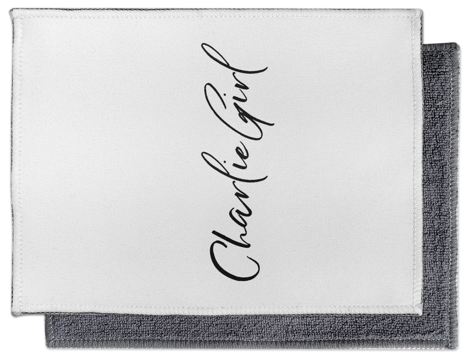 The back of this cleaning cloth is made from a gentle, grey microfiber material, that is masterful at removing smudges, grease, and fingerprints from lenses or electronic screens. The front side of the screen cleaner displays your personalized design in vibrant color. A beautiful stitch lines the edges and secures the microfiber to the polyester top. We provide you with the option of customizing this screen horizontally or vertically, depending on your preferences.