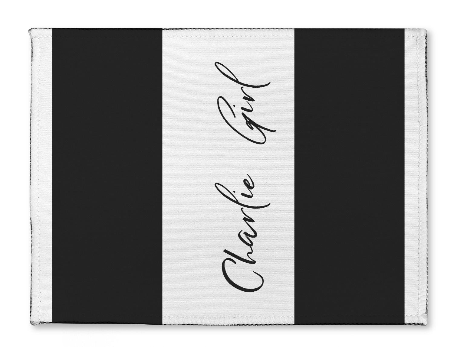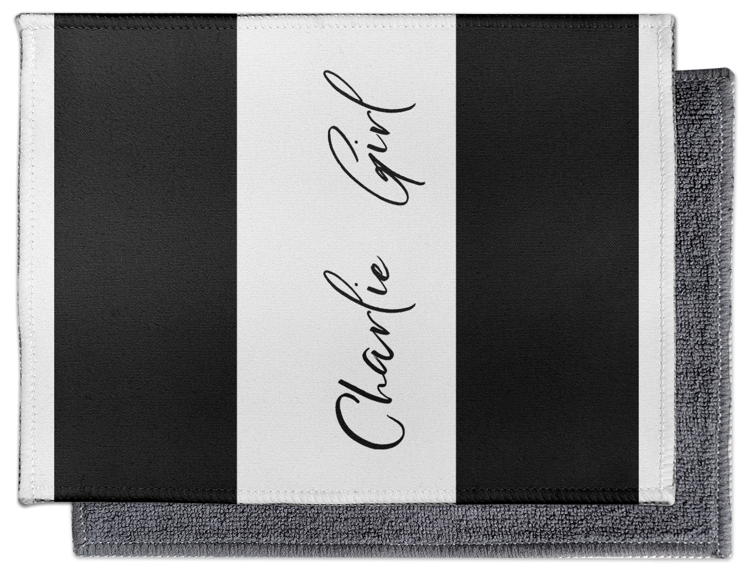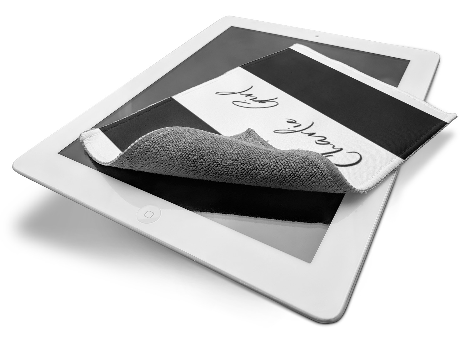The back of this cleaning cloth is made from a gentle, grey microfiber material, that is masterful at removing smudges, grease, and fingerprints from lenses or electronic screens. The front side of the screen cleaner displays your personalized design in vibrant color. A beautiful stitch lines the edges and secures the microfiber to the polyester top. We provide you with the option of customizing this screen horizontally or vertically, depending on your preferences.