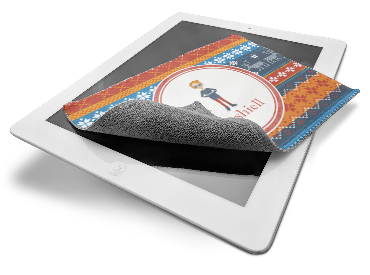 The back of this cleaning cloth is made from a gentle, grey microfiber material, that is masterful at removing smudges, grease, and fingerprints from lenses or electronic screens. The front side of the screen cleaner displays your personalized design in vibrant color. A beautiful stitch lines the edges and secures the microfiber to the polyester top. We provide you with the option of customizing this screen horizontally or vertically, depending on your preferences.