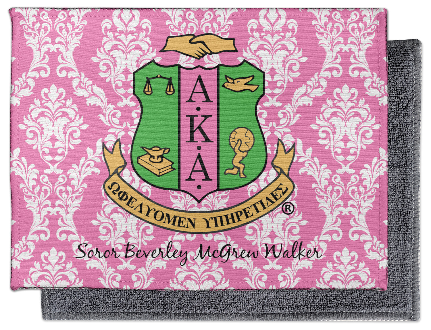 The back of this cleaning cloth is made from a gentle, grey microfiber material, that is masterful at removing smudges, grease, and fingerprints from lenses or electronic screens. The front side of the screen cleaner displays your personalized design in vibrant color. A beautiful stitch lines the edges and secures the microfiber to the polyester top. We provide you with the option of customizing this screen horizontally or vertically, depending on your preferences.