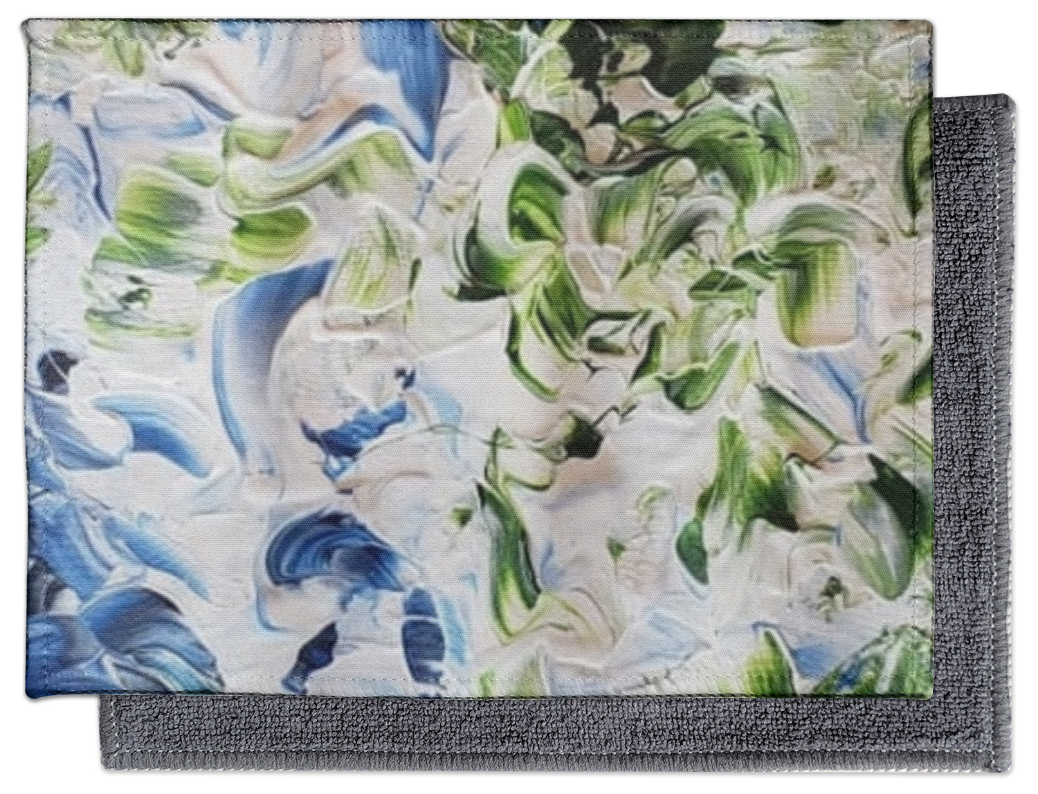 The back of this cleaning cloth is made from a gentle, grey microfiber material, that is masterful at removing smudges, grease, and fingerprints from lenses or electronic screens. The front side of the screen cleaner displays your personalized design in vibrant color. A beautiful stitch lines the edges and secures the microfiber to the polyester top. We provide you with the option of customizing this screen horizontally or vertically, depending on your preferences.