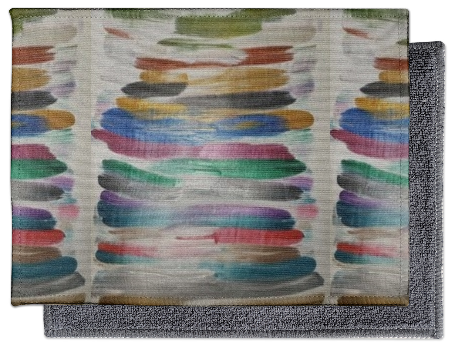 The back of this cleaning cloth is made from a gentle, grey microfiber material, that is masterful at removing smudges, grease, and fingerprints from lenses or electronic screens. The front side of the screen cleaner displays your personalized design in vibrant color. A beautiful stitch lines the edges and secures the microfiber to the polyester top. We provide you with the option of customizing this screen horizontally or vertically, depending on your preferences.