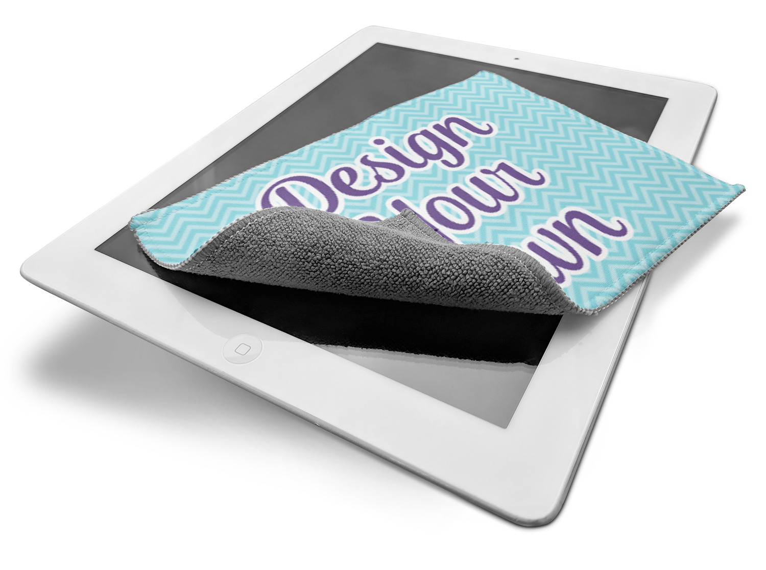 The back of this cleaning cloth is made from a gentle, grey microfiber material, that is masterful at removing smudges, grease, and fingerprints from lenses or electronic screens. The front side of the screen cleaner displays your personalized design in vibrant color. A beautiful stitch lines the edges and secures the microfiber to the polyester top. We provide you with the option of customizing this screen horizontally or vertically, depending on your preferences.