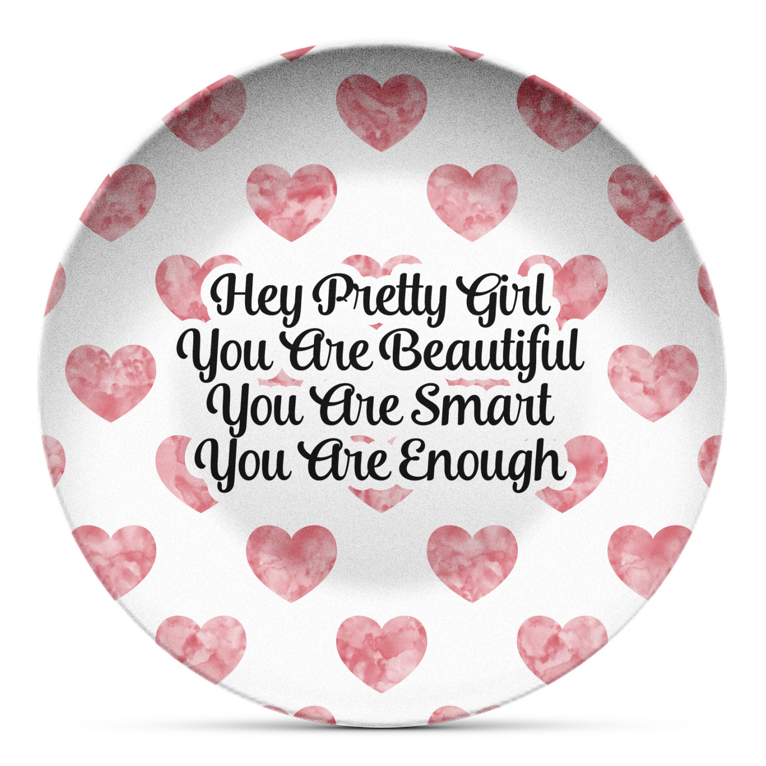 These plastic plates have the versatility, durability, and weight of melamine plates but are instead are made from a melamine-free composite, thermo-set, polymer plastic. These plates are made right here, in the USA, without the use of harmful chemicals, such as BPAs, formaldehyde, or DEHPs. Our elegant plastic plates can even withstand temperatures of up to 250 degrees Fahrenheit, for up to 60 minutes. The entire face of the plate exhibits your personalization in bright, vibrant color, and the plate's diameter measures at 10" long.