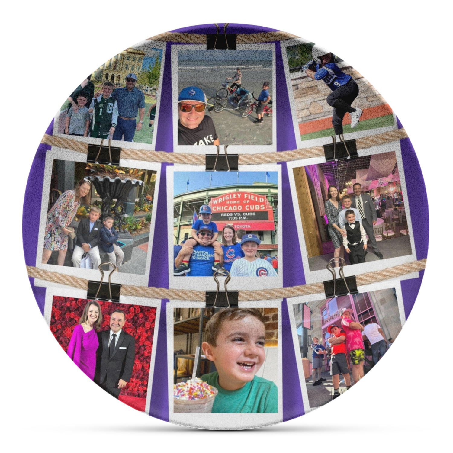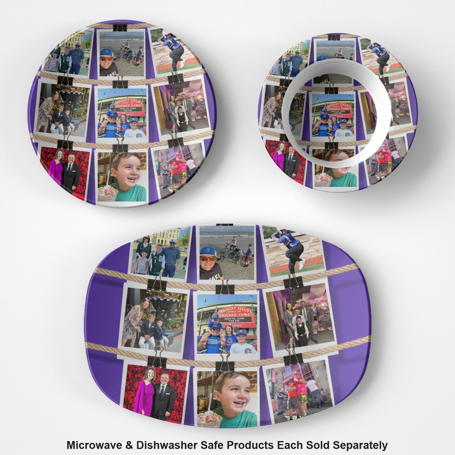 These plastic plates have the versatility, durability, and weight of melamine plates but are instead are made from a melamine-free composite, thermo-set, polymer plastic. These plates are made right here, in the USA, without the use of harmful chemicals, such as BPAs, formaldehyde, or DEHPs. Our elegant plastic plates can even withstand temperatures of up to 250 degrees Fahrenheit, for up to 60 minutes. The entire face of the plate exhibits your personalization in bright, vibrant color, and the plate's diameter measures at 10" long.