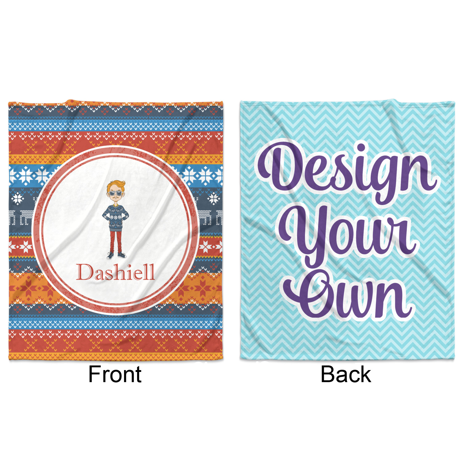 Blankets can be customized on a single side or both sides; you can get the same or different designs on the two sides. The choice is yours! You can even design it vertically OR horizontally.