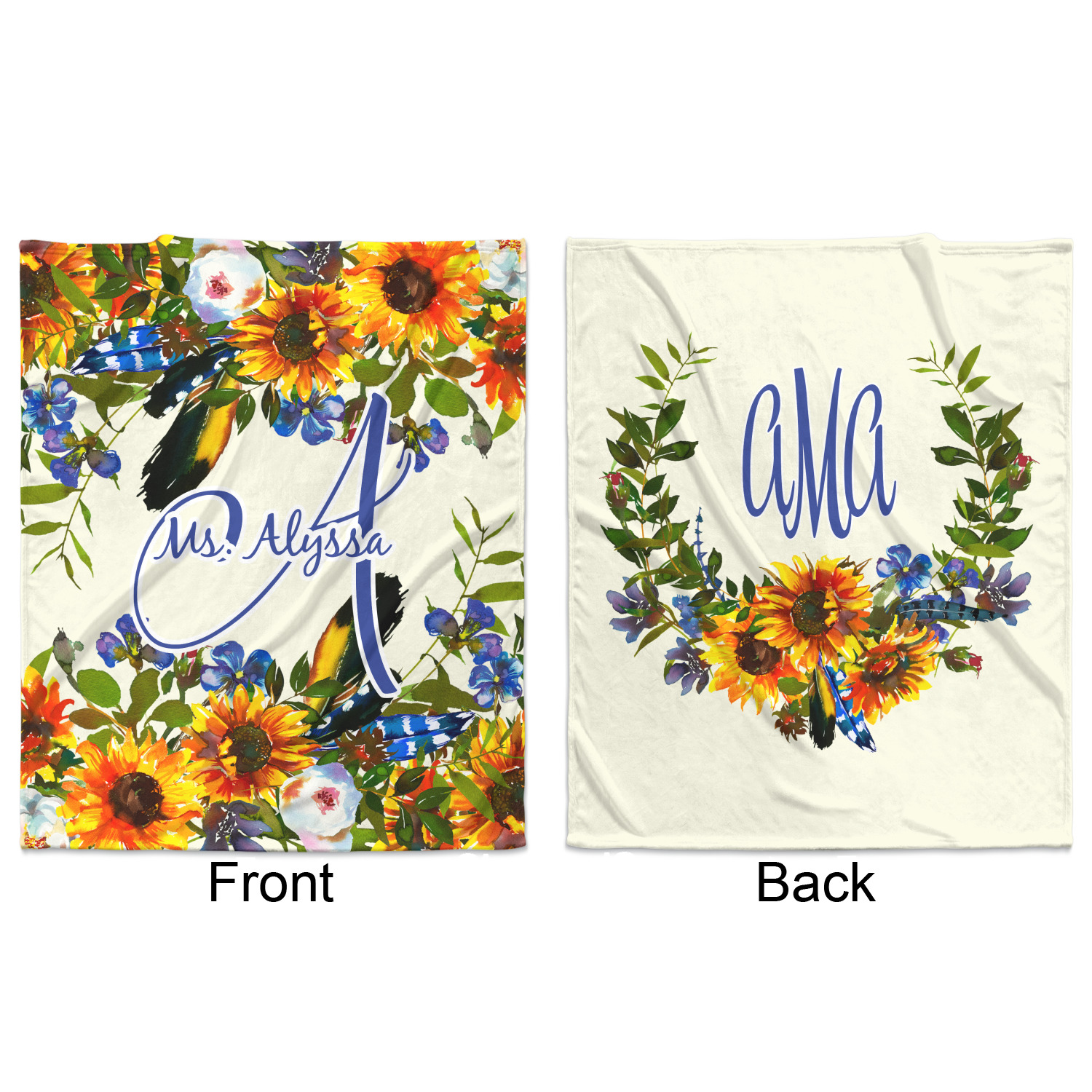 Blankets can be customized on a single side or both sides; you can get the same or different designs on the two sides. The choice is yours! You can even design it vertically OR horizontally.