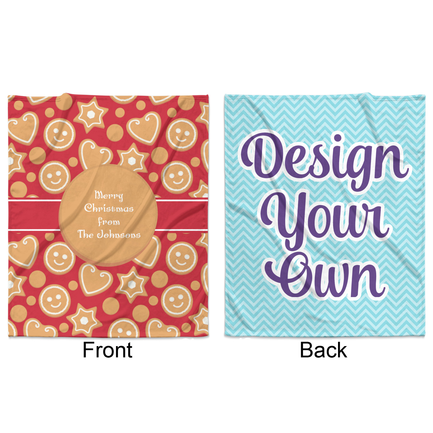 Blankets can be customized on a single side or both sides; you can get the same or different designs on the two sides. The choice is yours! You can even design it vertically OR horizontally.