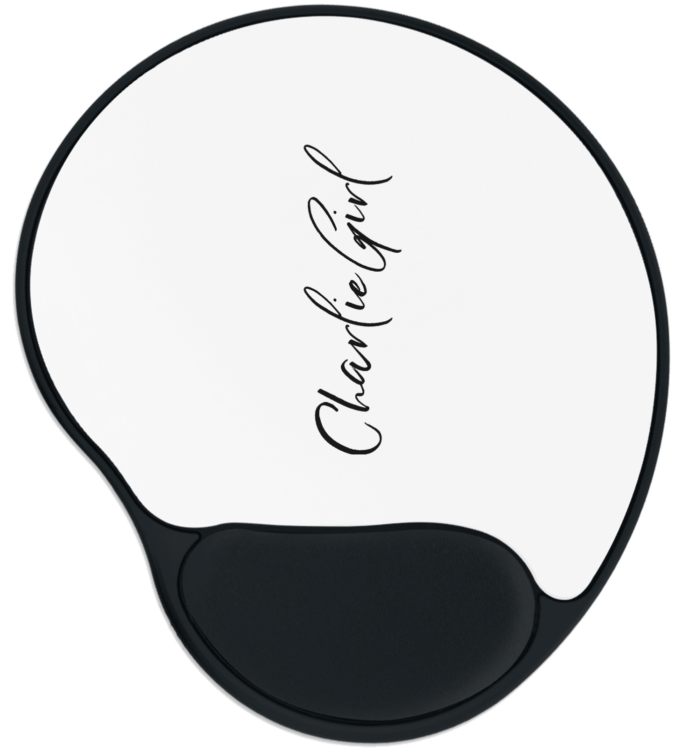 The top of these personalized mouse pads are made from a polyester, while the underside is plastic. The back of these mouse mats include rubber feet to prevent any slippage while in use. A padded wrist support, made from plush memory foam, occupies the bottom section of these computer mouse pads. Your customized design is printed onto the face of this mat, with the remaining sides and support piece colored in black. The mat itself is rounded and measures at 10.25" x 9.13".