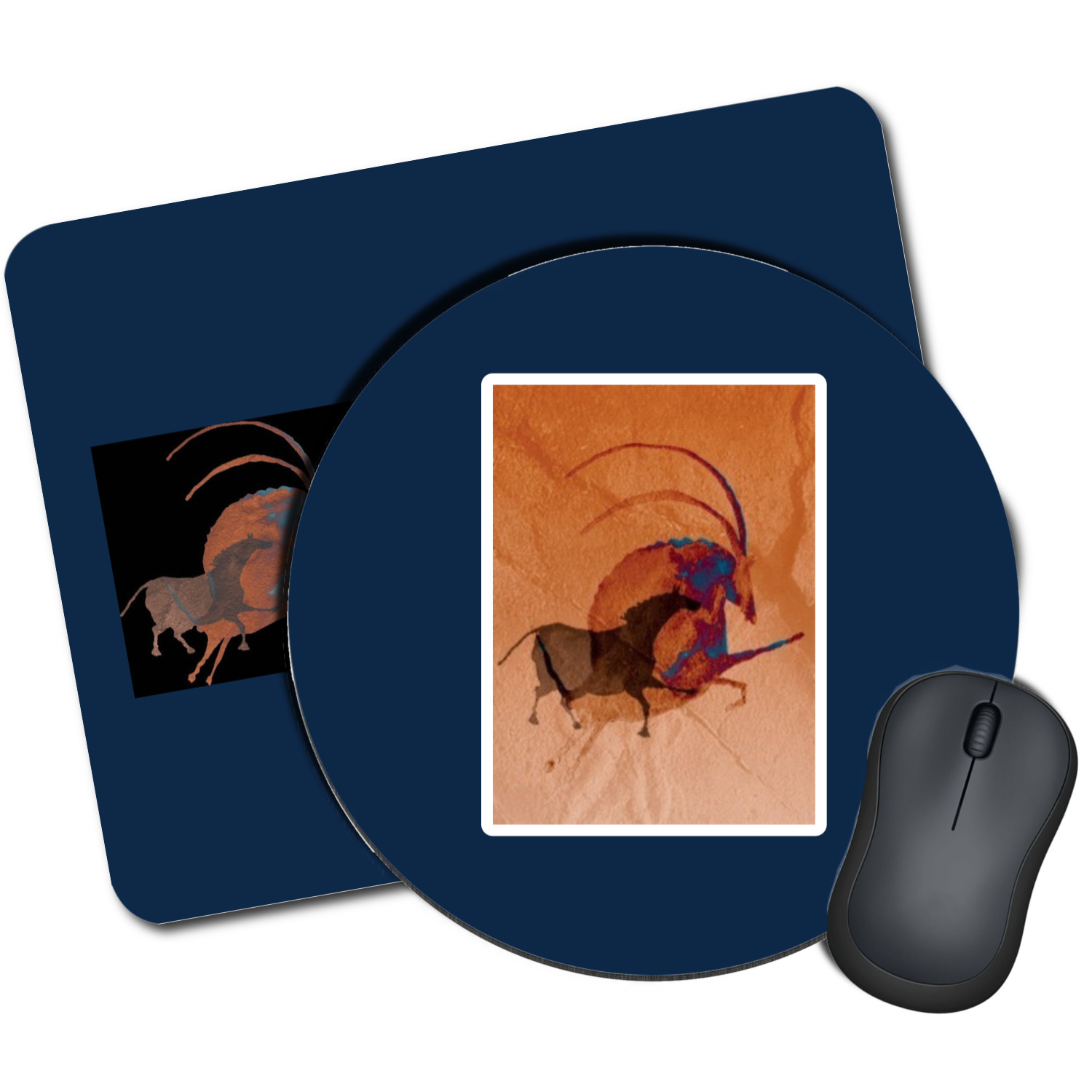 We offer two versions of this mat. The first is a rectangular version, that is approximately 9.25 by 7.75 inches. This model features rounded edges and is ¼ of an inch thick. We also offer round mouse pad that has an 8 inch diameter, but is also a ¼ of an inch thick.