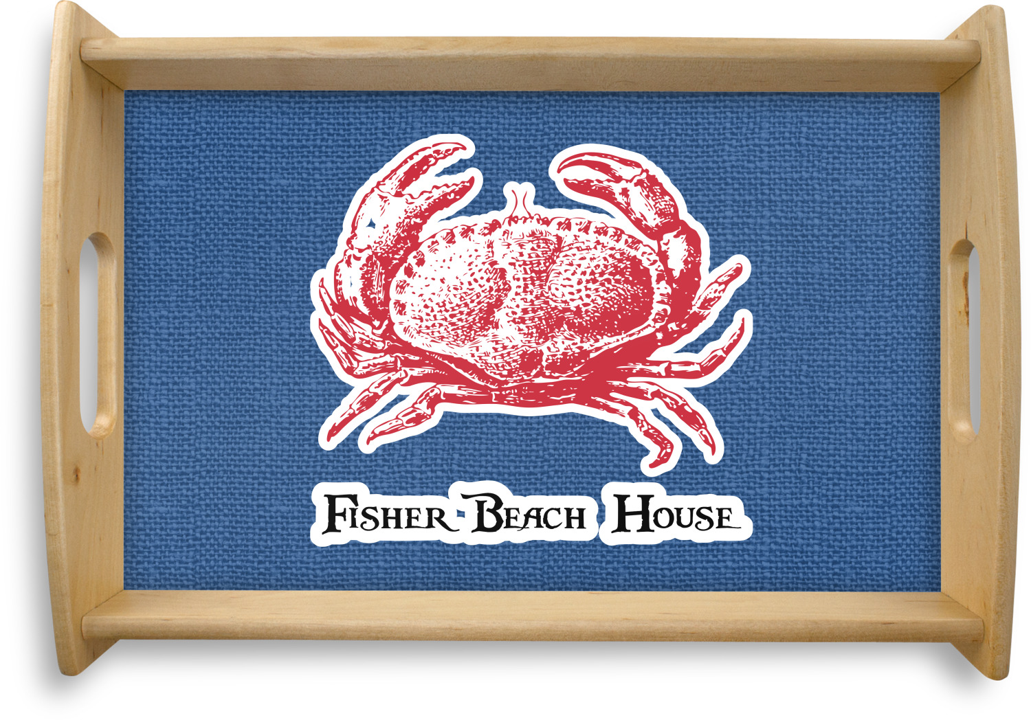 This serving tray with handles features square edges and two rounded sides, creating a very modern look. Each side is fabricated from a beautifully cut, natural wood. The bottom of the interior of the tray displays your customized design in bright, vibrant color. The tray is sold in both a black color and a natural wood look. Each variation of the wood serving tray has two sizes: Small, which is 14" x 10" x 2.25", and Large, which is 19.5" x 13.5" x 2.75".
