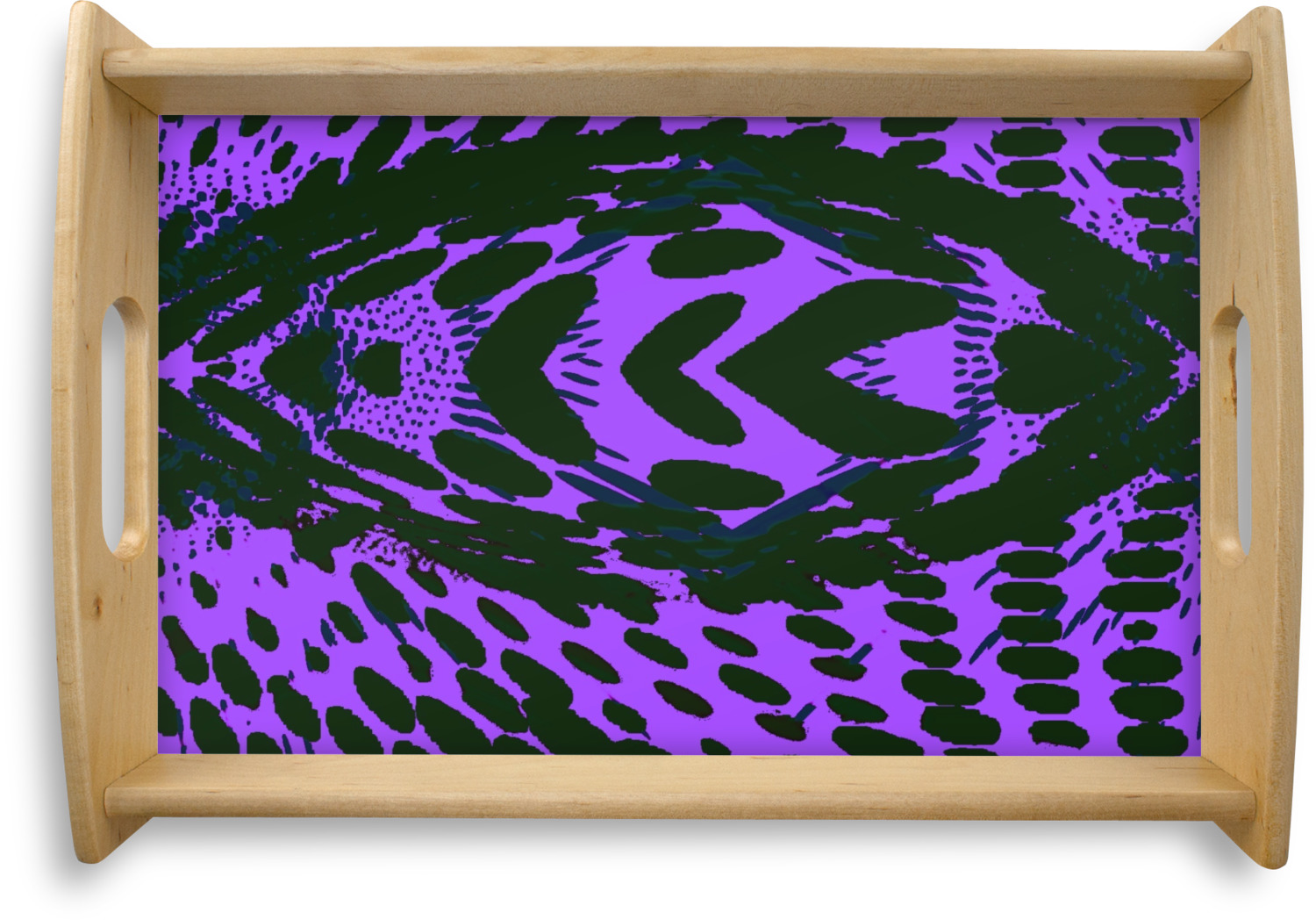 This serving tray with handles features square edges and two rounded sides, creating a very modern look. Each side is fabricated from a beautifully cut, natural wood. The bottom of the interior of the tray displays your customized design in bright, vibrant color. The tray is sold in both a black color and a natural wood look. Each variation of the wood serving tray has two sizes: Small, which is 14" x 10" x 2.25", and Large, which is 19.5" x 13.5" x 2.75".
