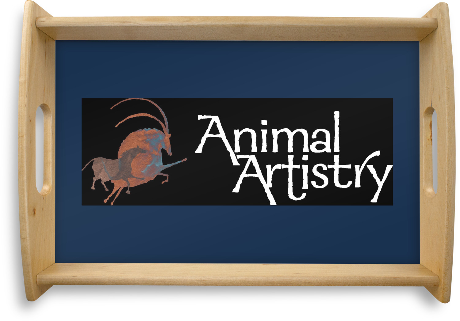 This serving tray with handles features square edges and two rounded sides, creating a very modern look. Each side is fabricated from a beautifully cut, natural wood. The bottom of the interior of the tray displays your customized design in bright, vibrant color. The tray is sold in both a black color and a natural wood look. Each variation of the wood serving tray has two sizes: Small, which is 14" x 10" x 2.25", and Large, which is 19.5" x 13.5" x 2.75".