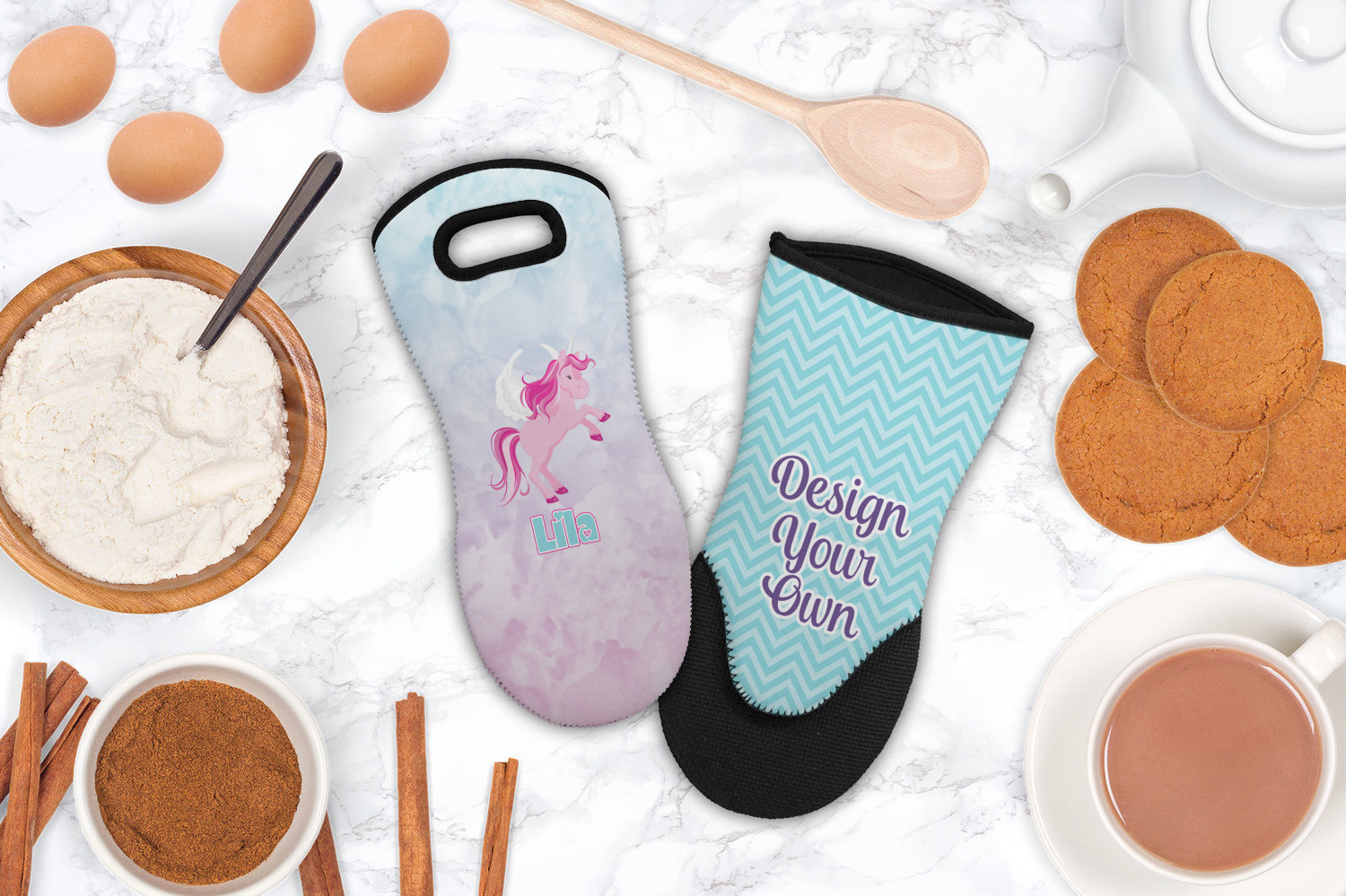 Update your collection of kitchen apparel and accessories with our neoprene oven mitts! These cooking gloves are highly practical and can be personalized to match your unparalleled, individual style. Customize one to coordinate with the rest of your kitchen's decor, or as a gift for the self-proclaimed baker in your life!