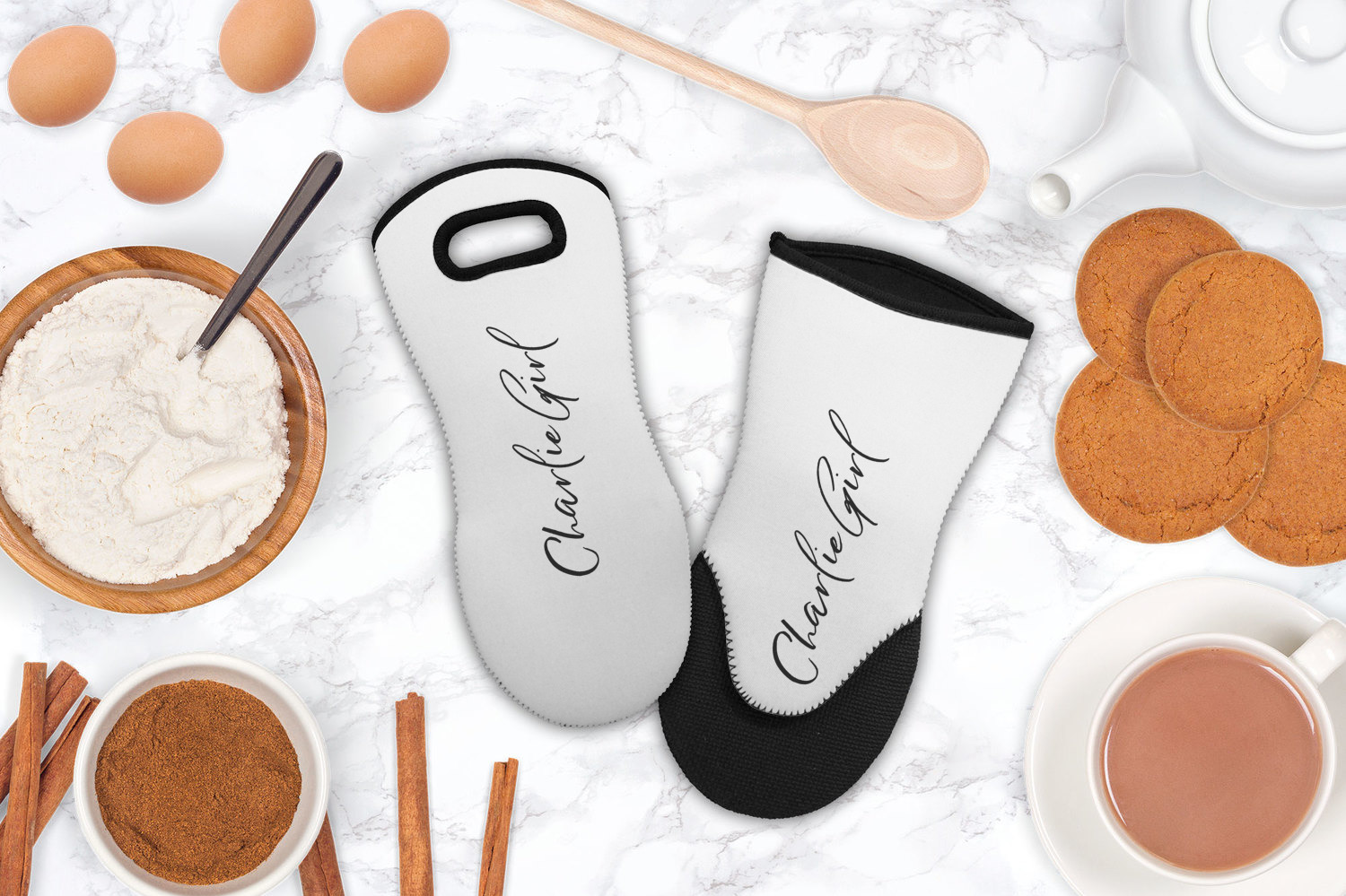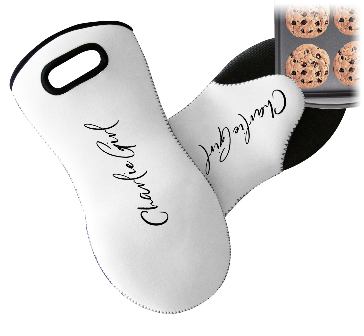 Update your collection of kitchen apparel and accessories with our neoprene oven mitts! These cooking gloves are highly practical and can be personalized to match your unparalleled, individual style. Customize one to coordinate with the rest of your kitchen's decor, or as a gift for the self-proclaimed baker in your life!