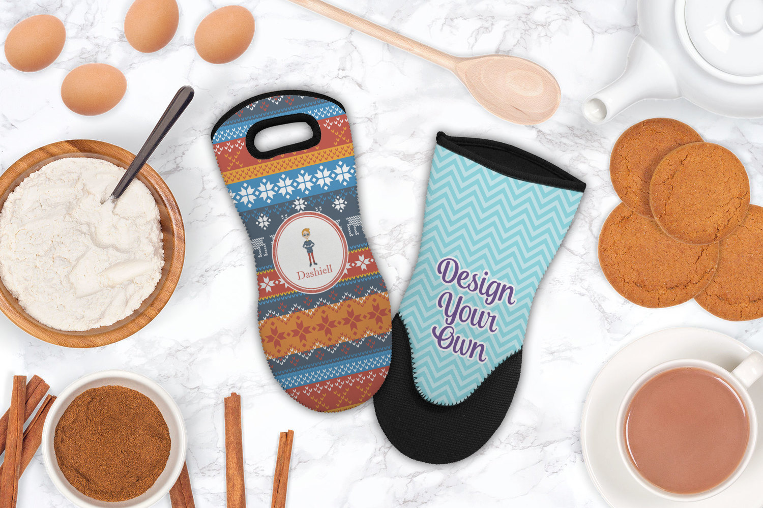If personalizing your home's decor is your end goal, we have a multitude of options that await you. Have a look through our Home and Garden department for more functional decor opportunities! We carry kitchen towels, kitchen floor mats, and trivets within our Kitchen category that can be customized to complement your new mitt, or your kitchen's decor!