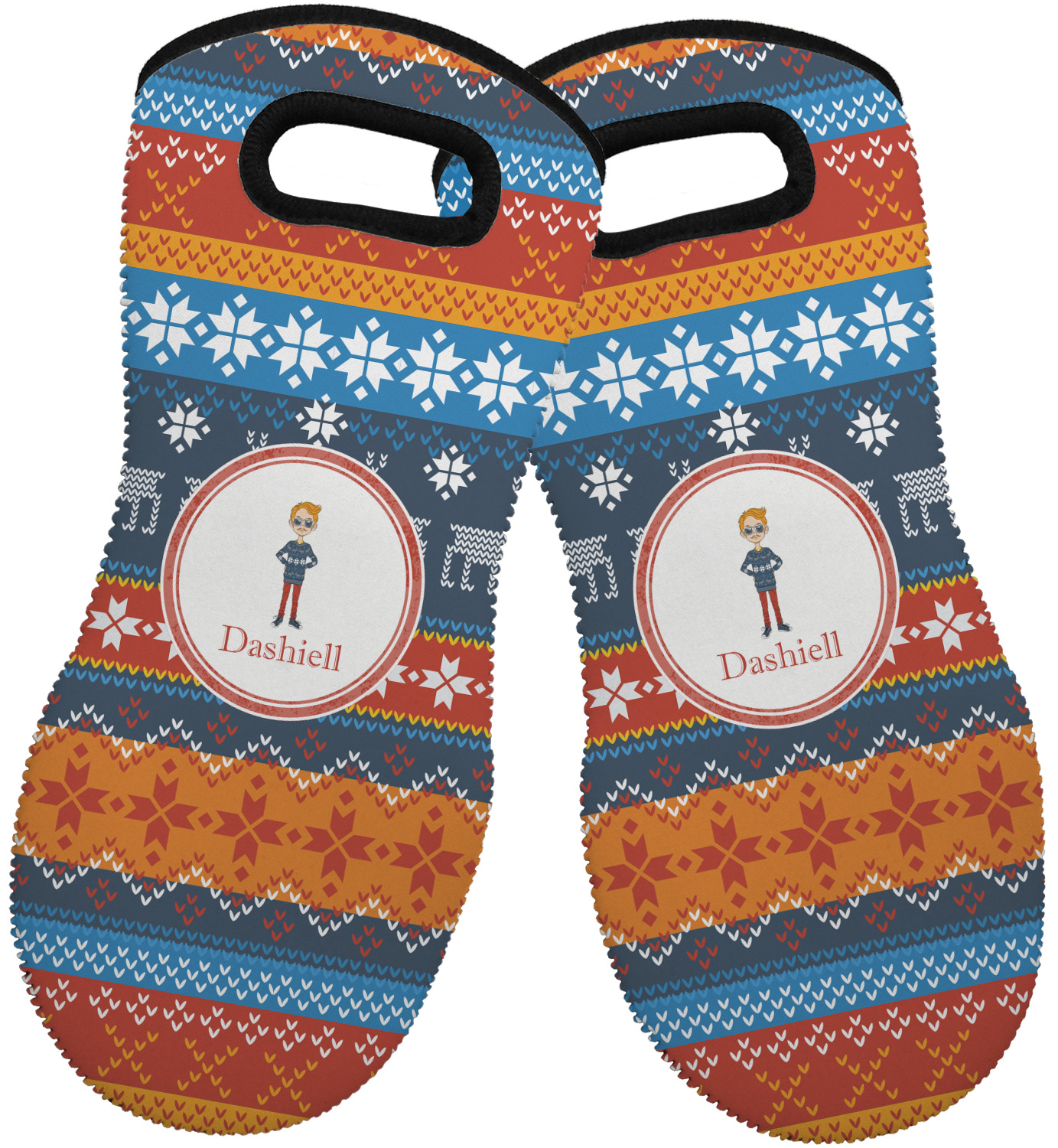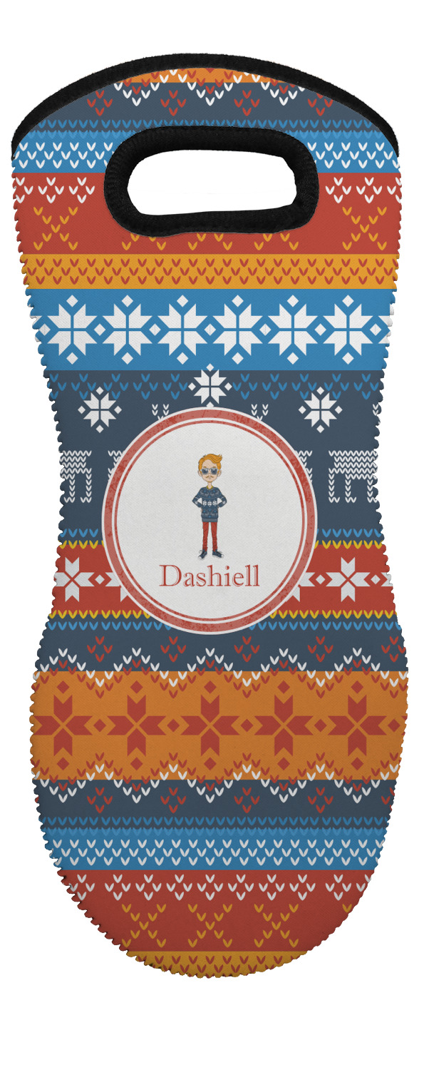 These heat resistant gloves are made entirely of a durable neoprene; the front features a softer texture, while the palm's side has a textured surface, meant to handle heat up to 500 degrees Fahrenheit. Thick, heavy duty stitching connects the two sides. A small, oval cutout appears on the front, and can be used to hang and store the mitt. Your personalization appears on the front, and the upper part of the back of the mitt. The style of these oven mitts are suitable for both the right and left hand, depending on your needs. If you need one for each hand, be sure to order two!