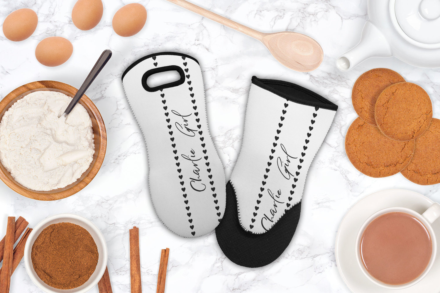 Update your collection of kitchen apparel and accessories with our neoprene oven mitts! These cooking gloves are highly practical and can be personalized to match your unparalleled, individual style. Customize one to coordinate with the rest of your kitchen's decor, or as a gift for the self-proclaimed baker in your life!