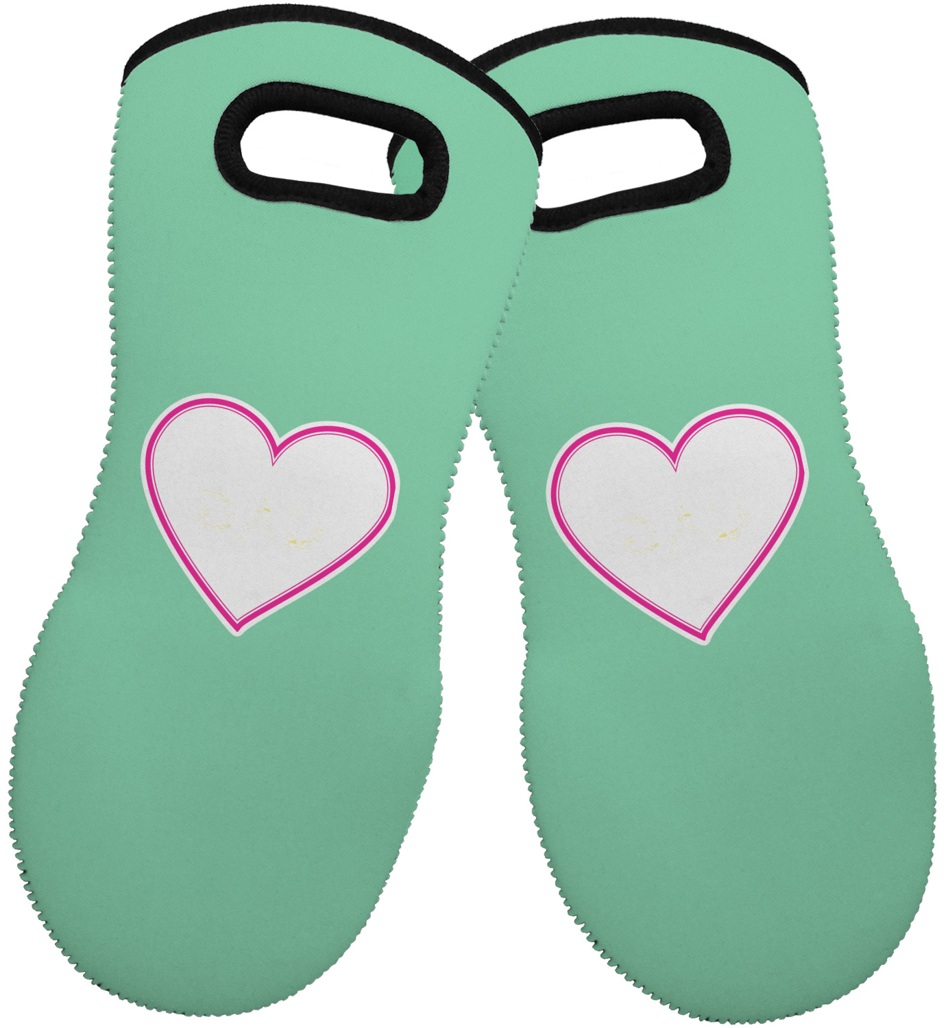 These heat resistant gloves are made entirely of a durable neoprene; the front features a softer texture, while the palm's side has a textured surface, meant to handle heat up to 500 degrees Fahrenheit. Thick, heavy duty stitching connects the two sides. A small, oval cutout appears on the front, and can be used to hang and store the mitt. Your personalization appears on the front, and the upper part of the back of the mitt. The style of these oven mitts are suitable for both the right and left hand, depending on your needs. If you need one for each hand, be sure to order two!